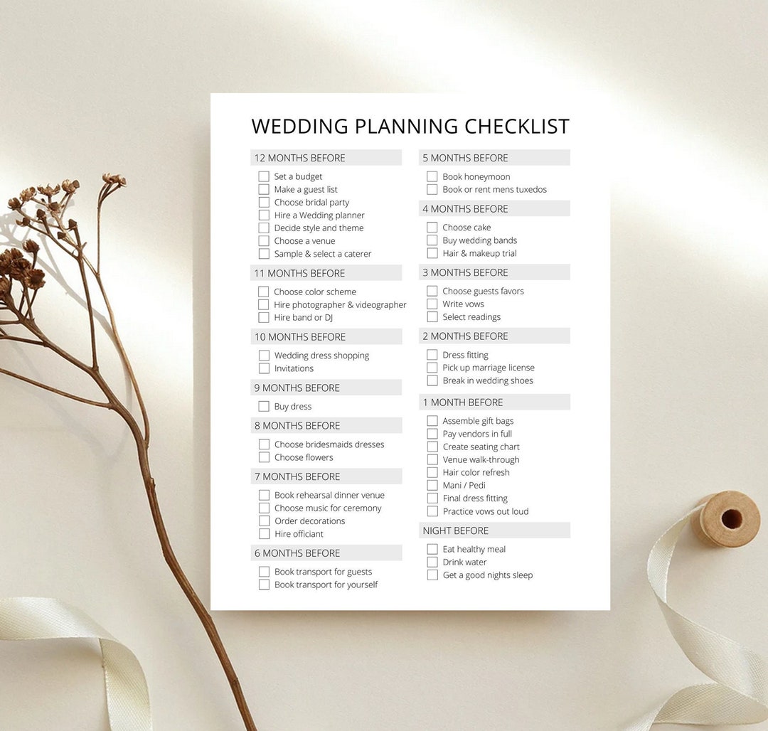 Wedding planning checklist checklist 12 month wedding planning etsy