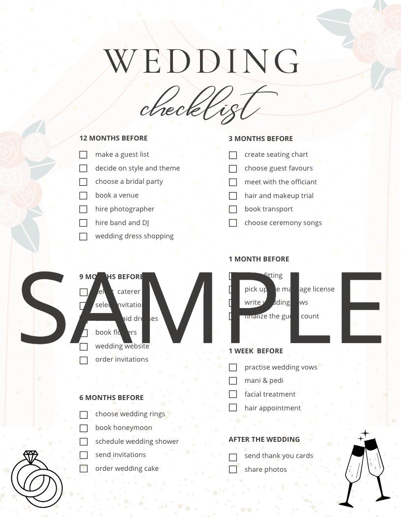 Wedding Checklist Template / Wedding Tasks Tracker / Customizable