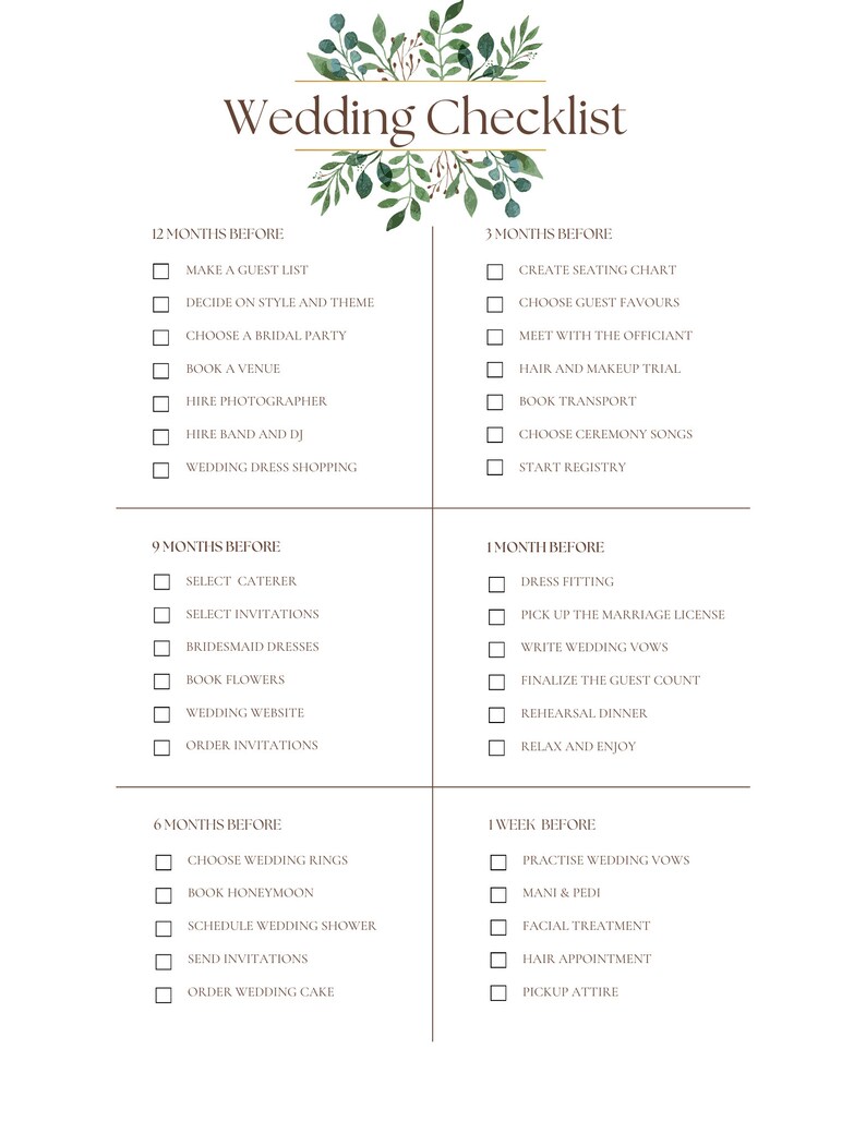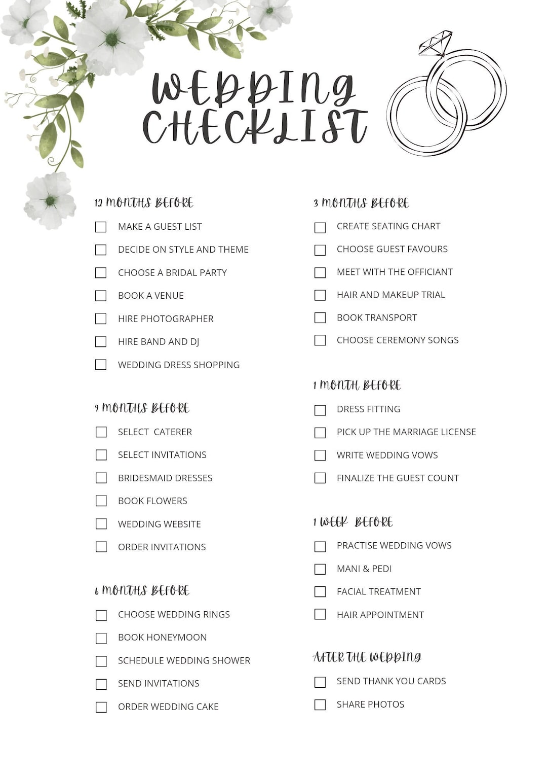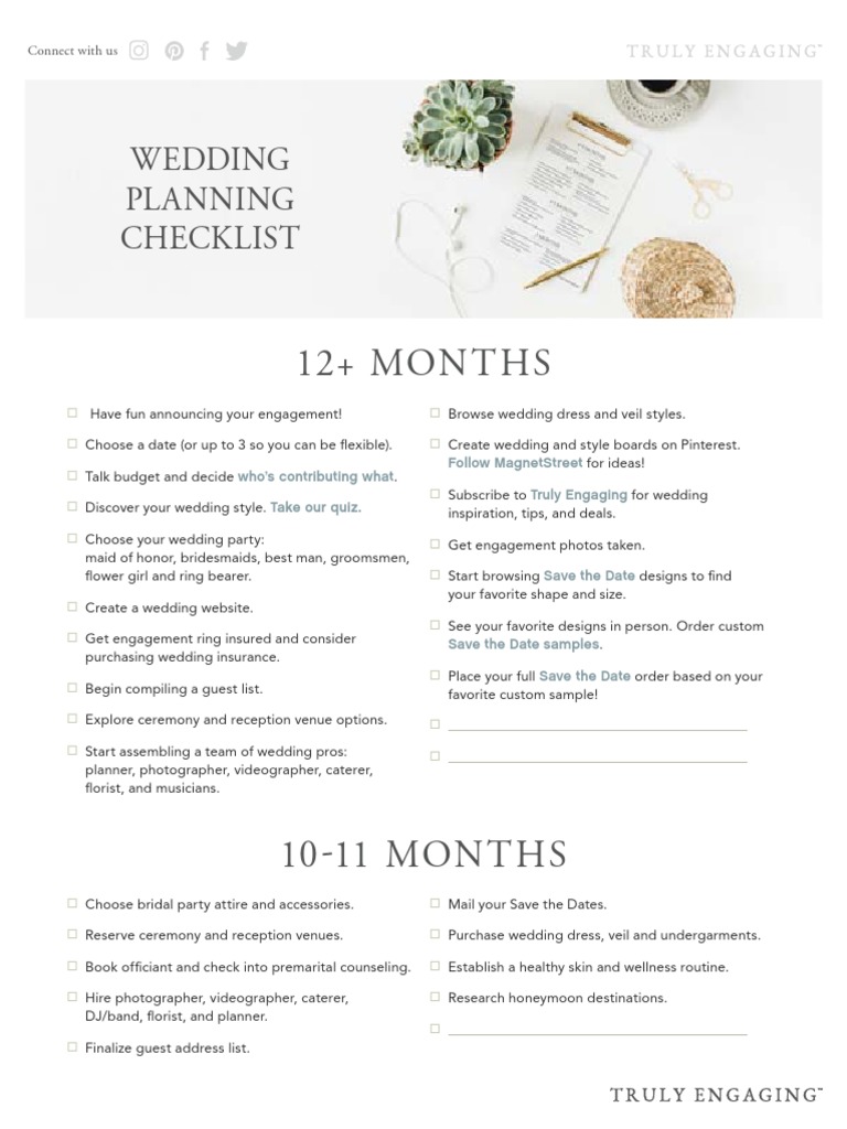 12 Month Wedding Planning Checklist Free Printable Party Ideas for