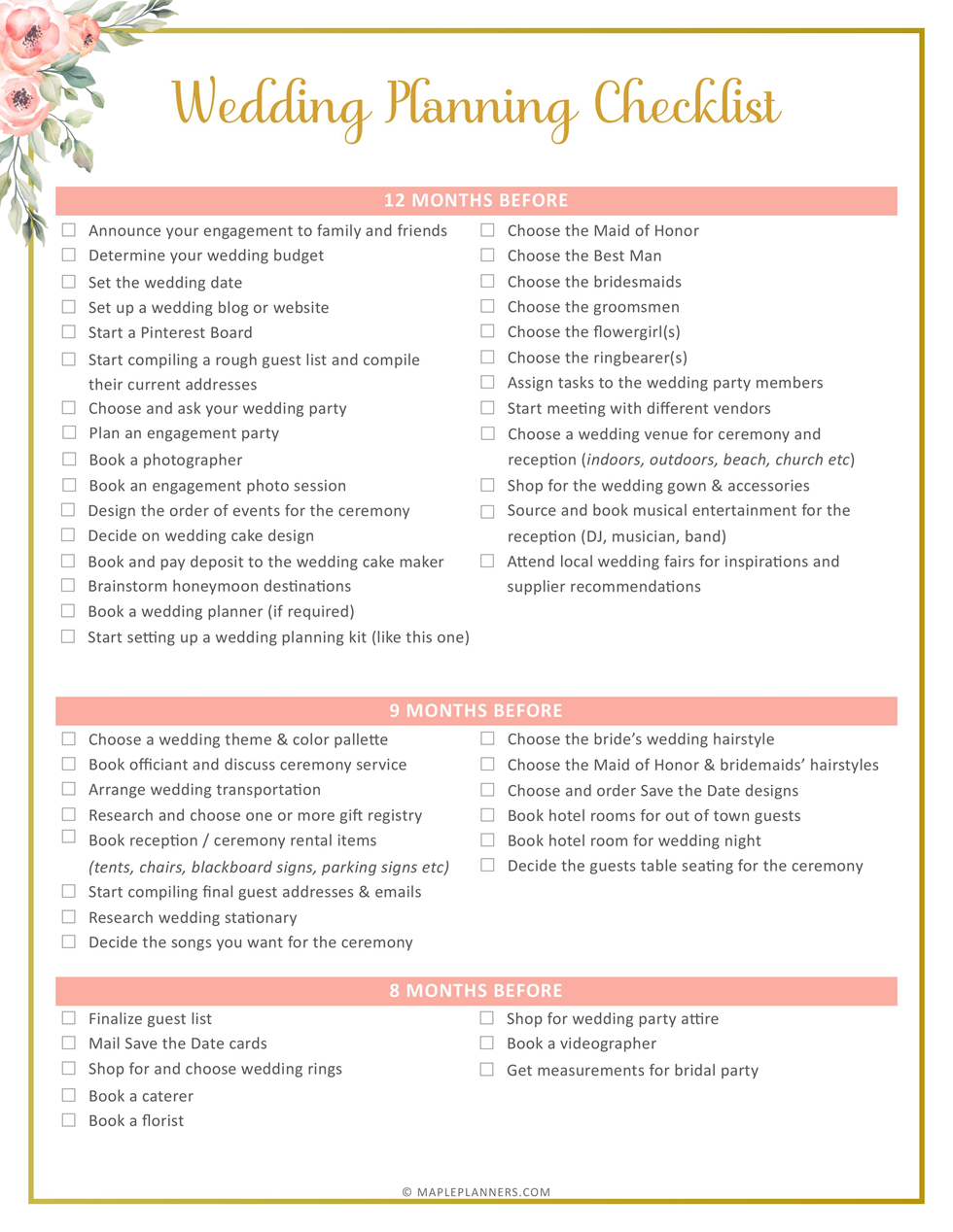 Wedding Planning Checklist Download Free Printables Worksheets Library