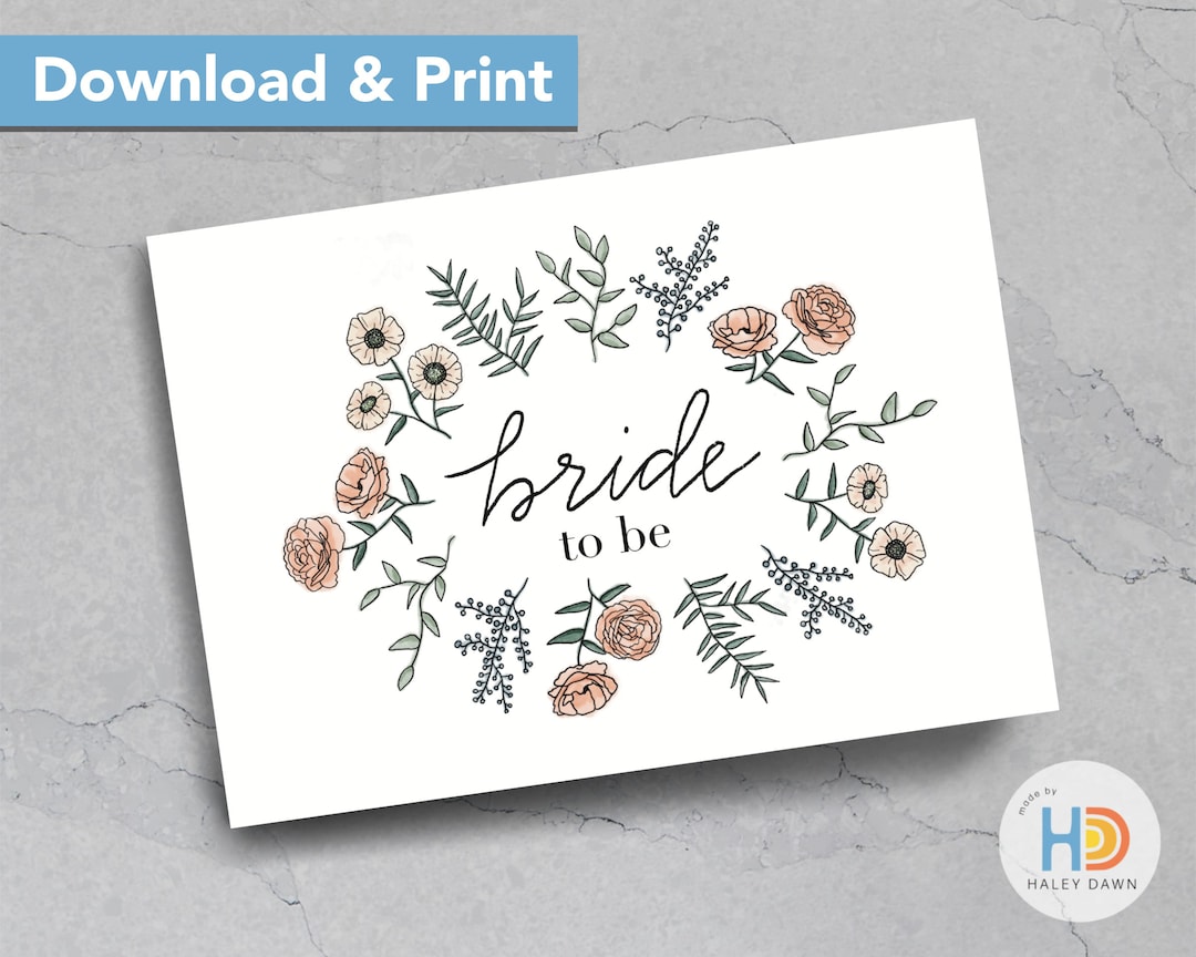 Printable Bridal Shower Card PDF Downloads 2 Sizes // Bride to Be