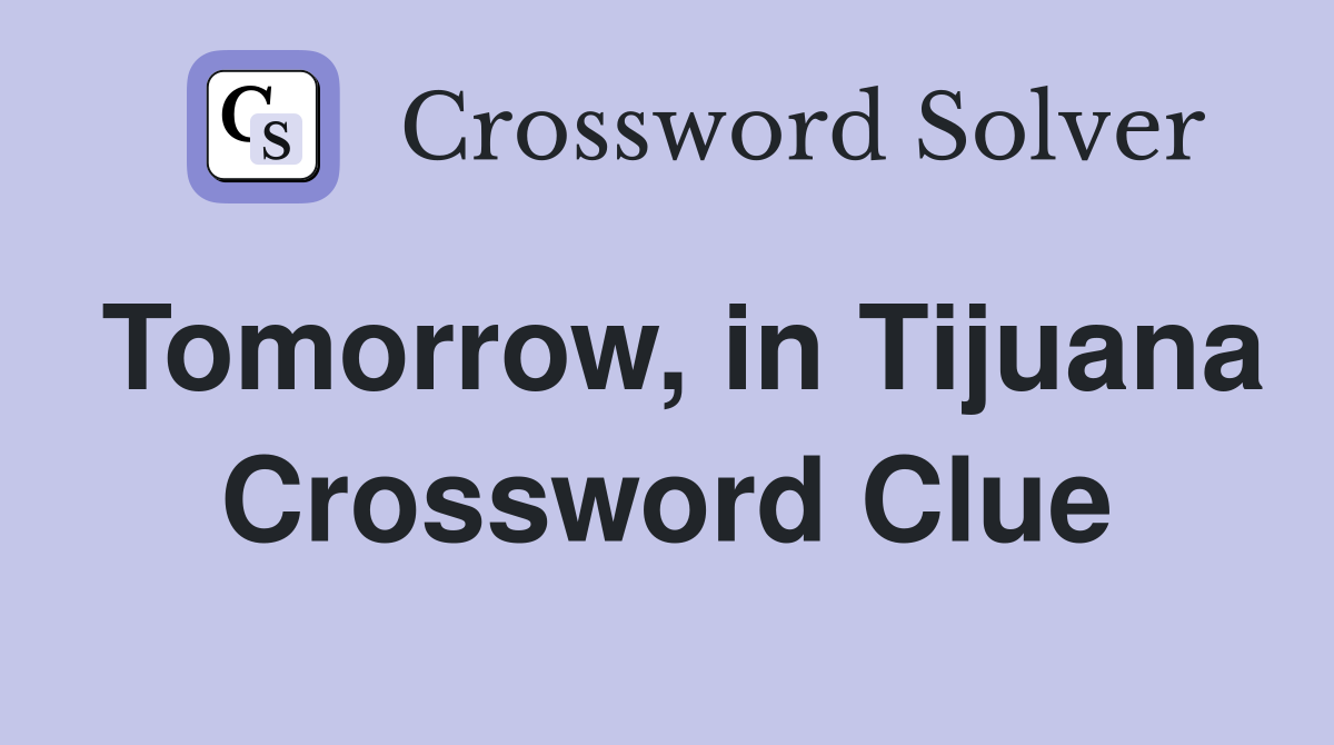 Tomorrow in Tijuana Crossword Clue Answers Crossword Solver