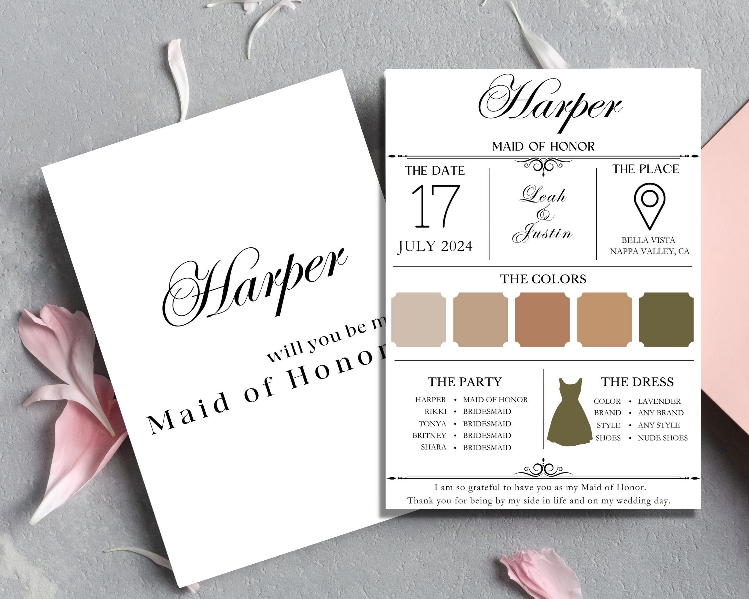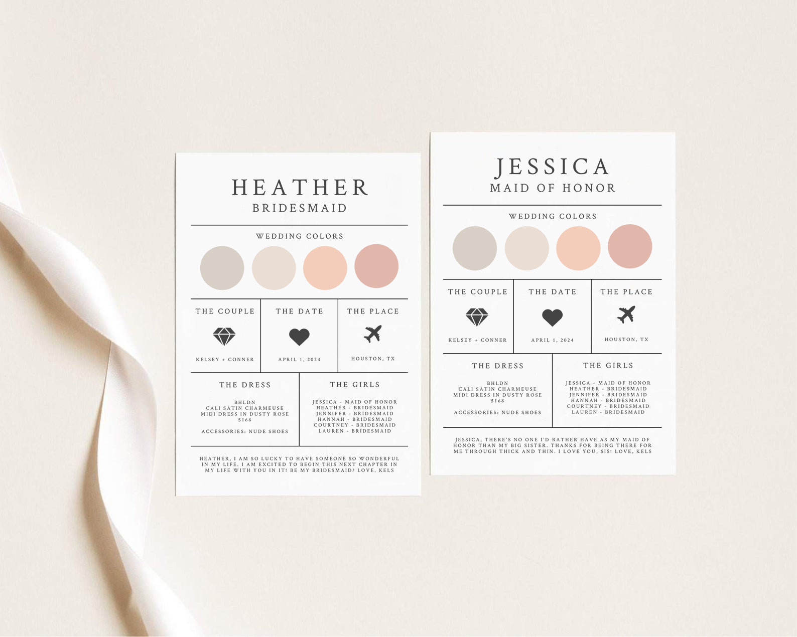 Editable Bridesmaid Proposal Card Bridal Party Information Card