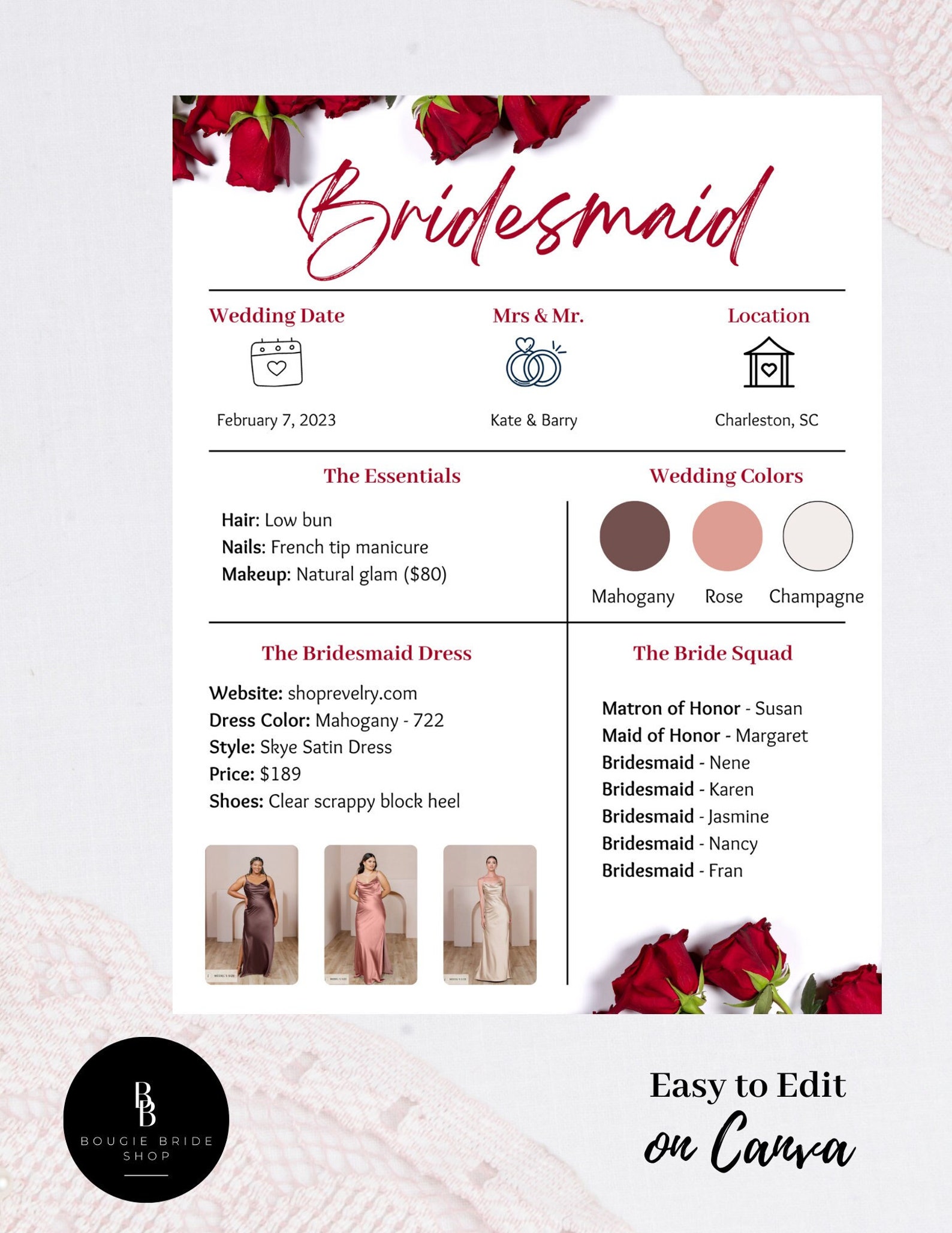 Bridesmaid Info Card Template Easily Edit in Canva Infographic Bridal