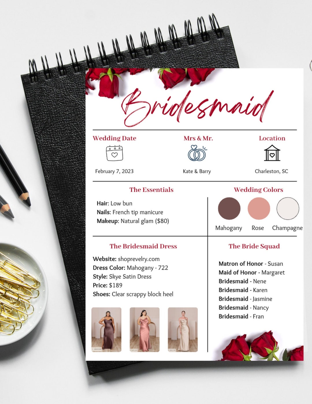 Tara bridesmaid info card template bridal party info card bridesmaid