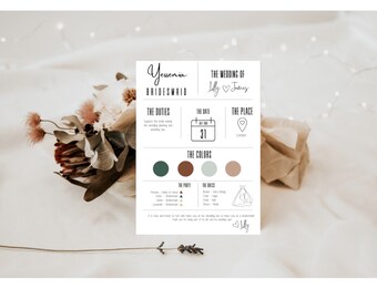 MARLO Modern Bridesmaid Info Card Template Bridal Party Info Card