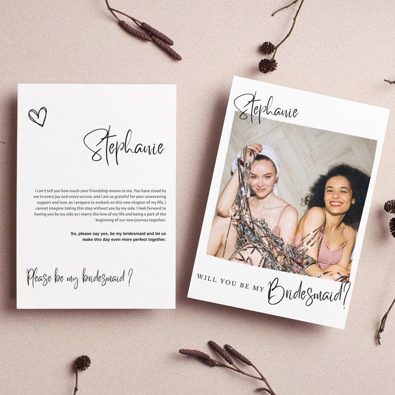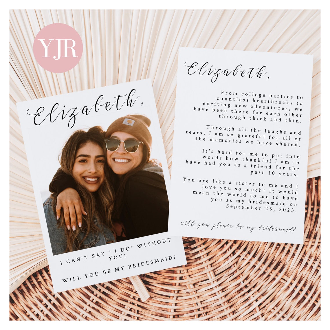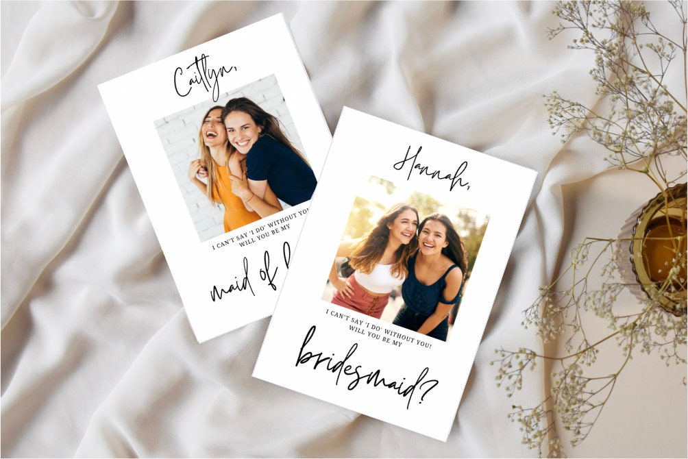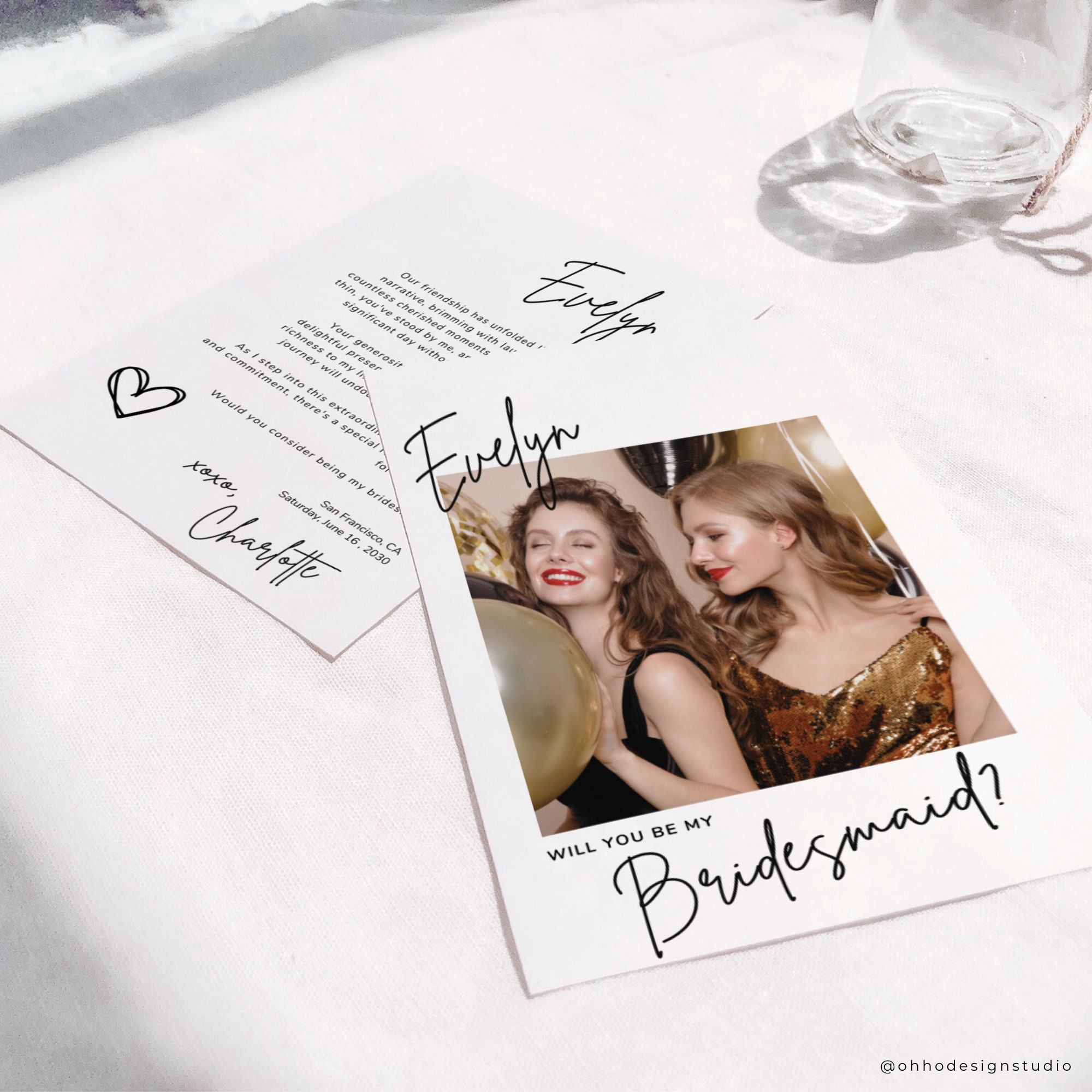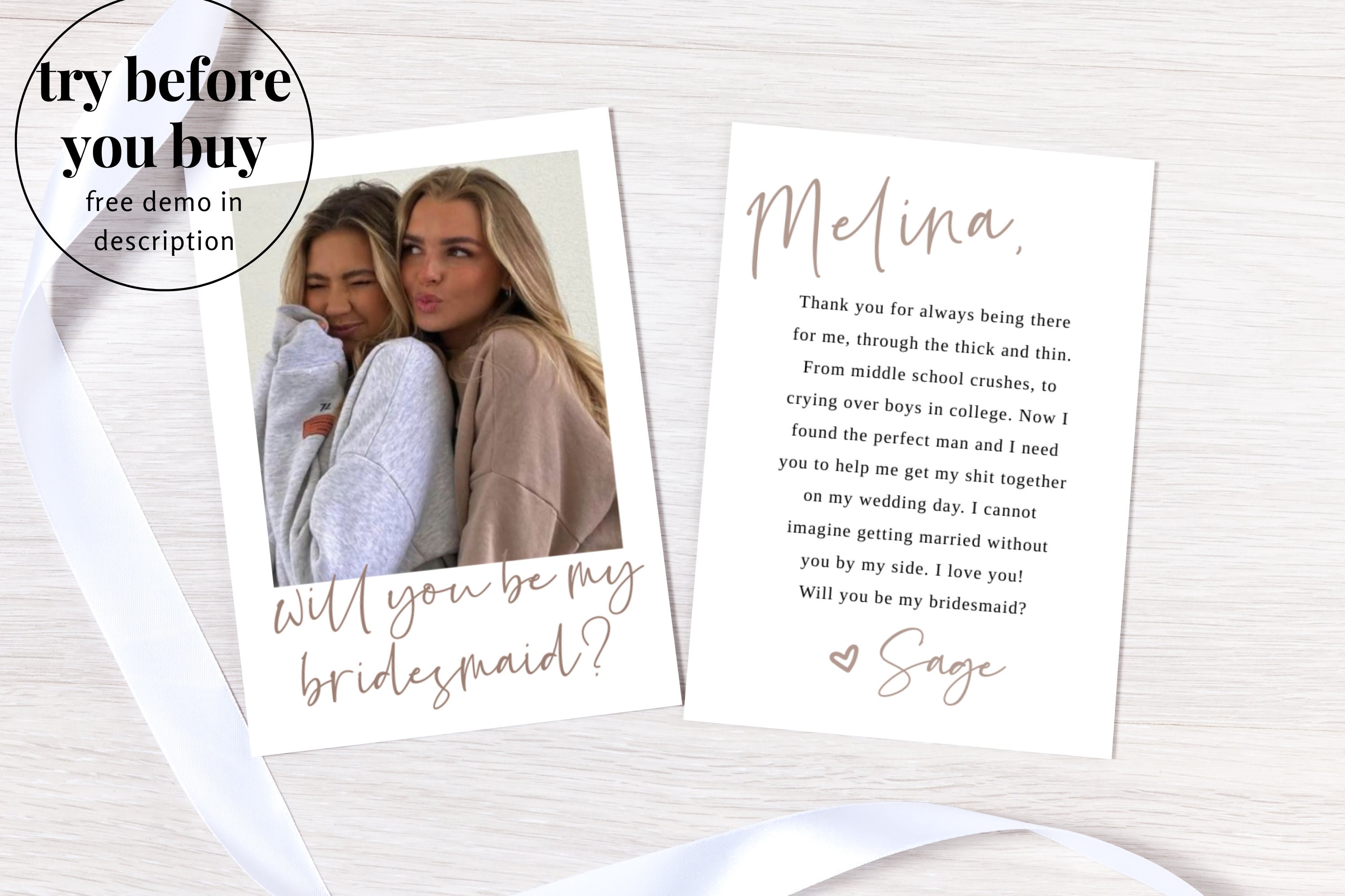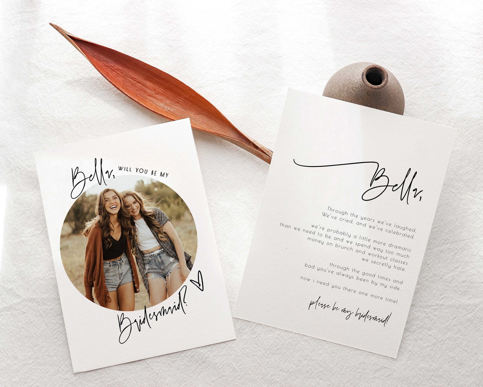 Bridesmaid Proposal Card Template With Photo Will You Be My Etsy
