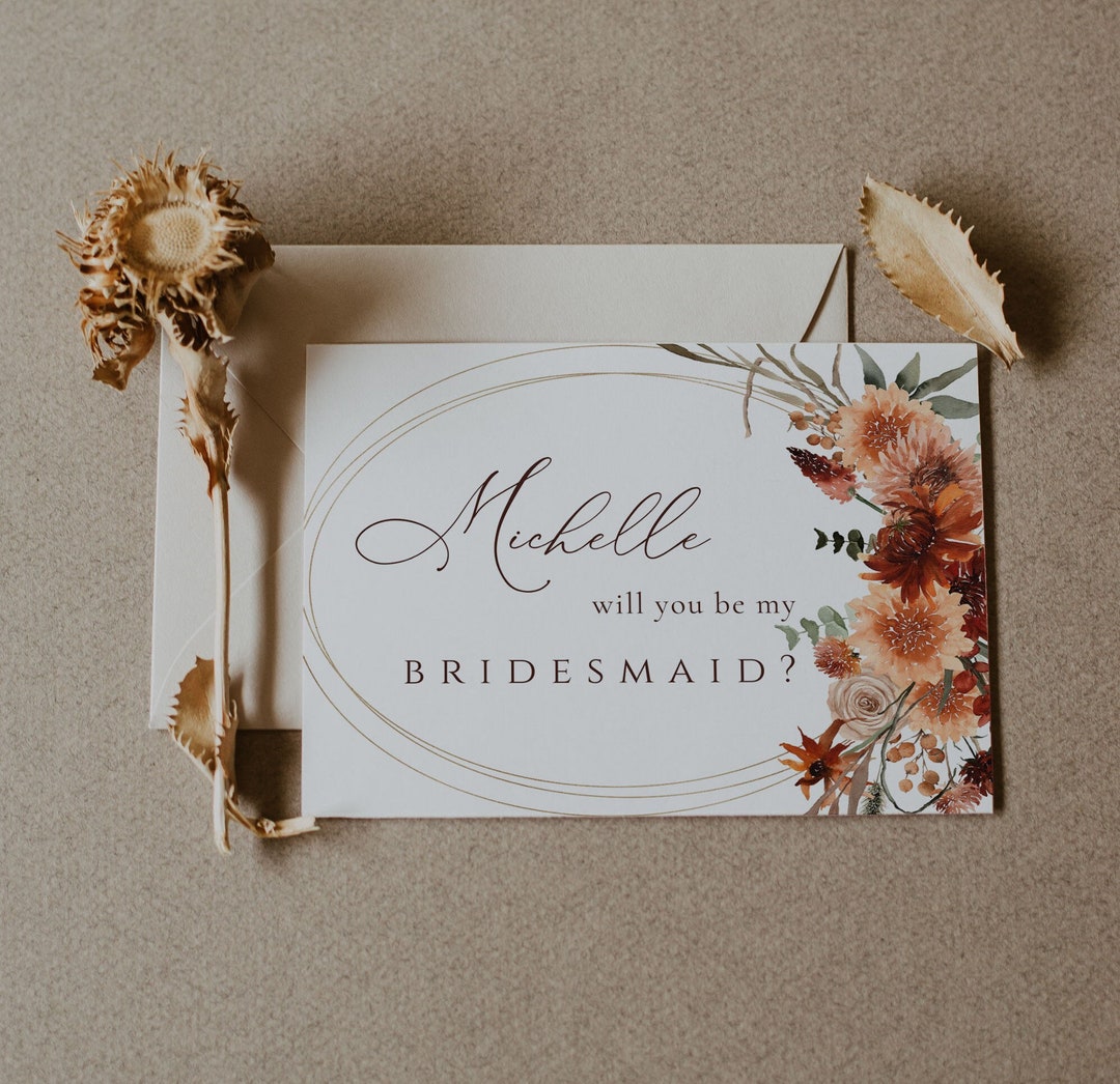 Bridesmaid Proposal Card Template Editable Printable Fall Etsy