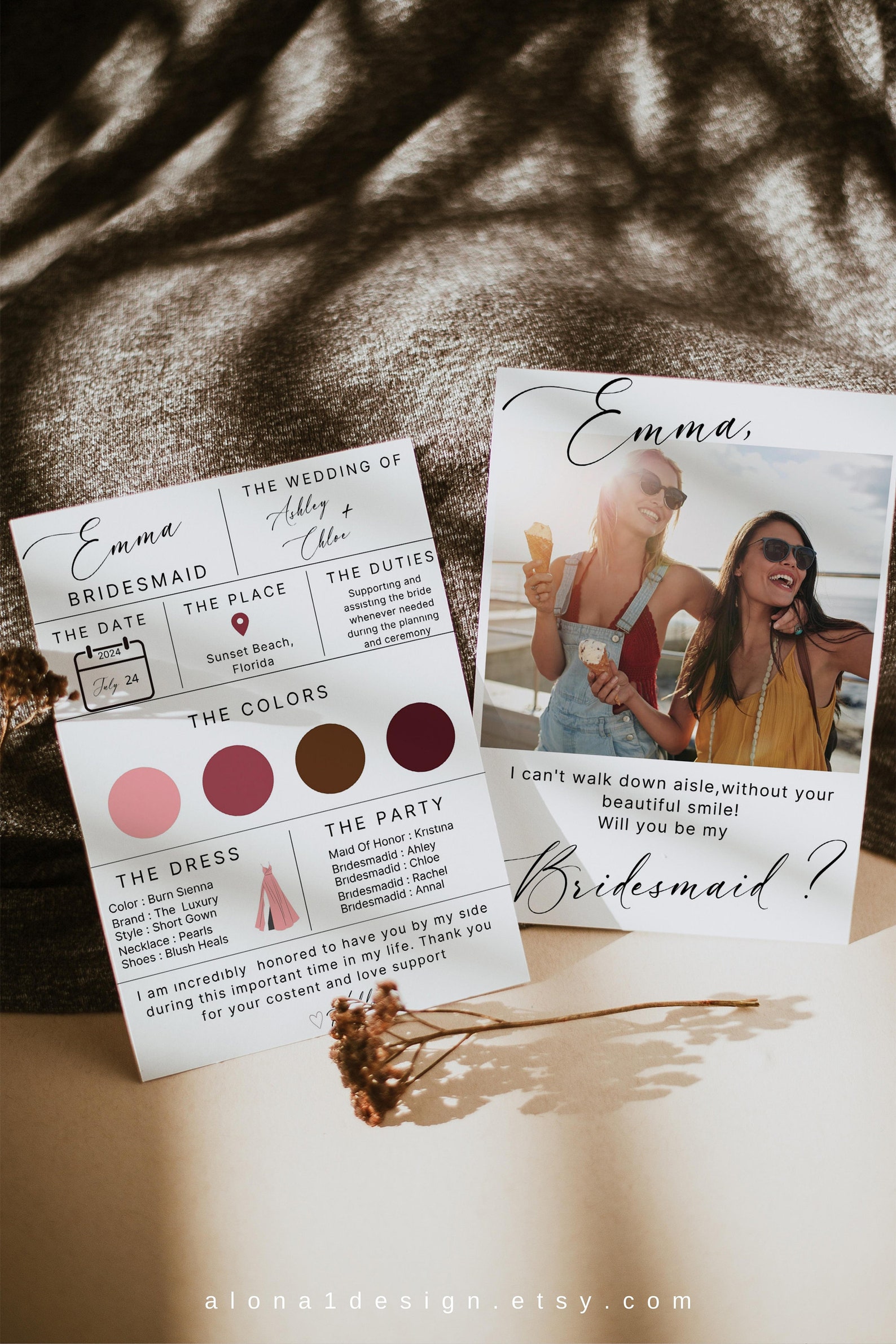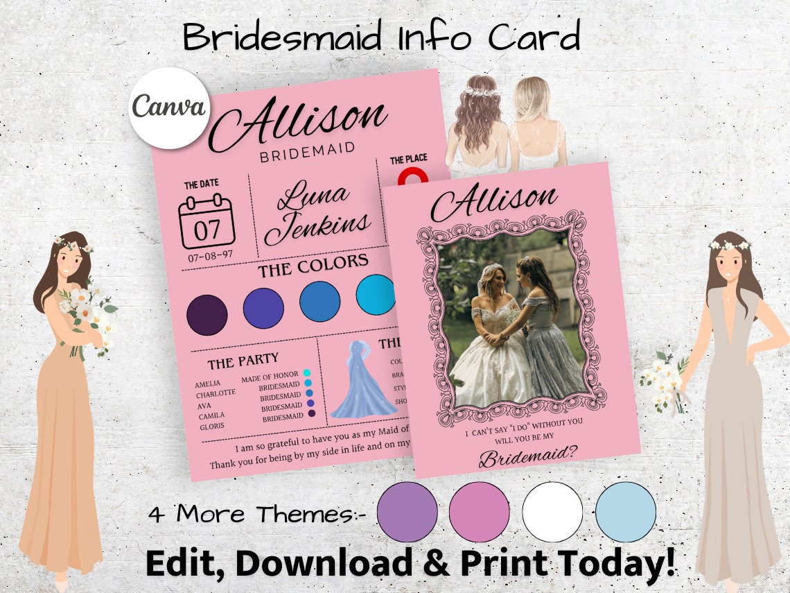 Bridesmaid Proposal Card Template Photo Bridesmaid Info Etsy