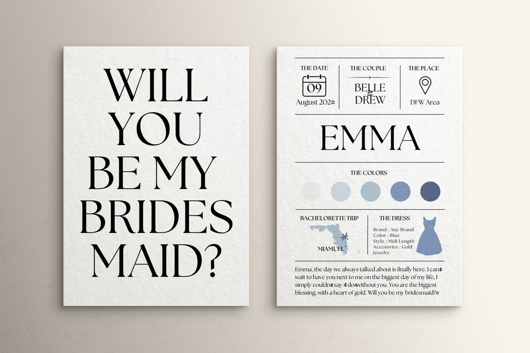 Bridesmaid Proposal Spec Sheet Card Template Minimal Clean Aesthetic