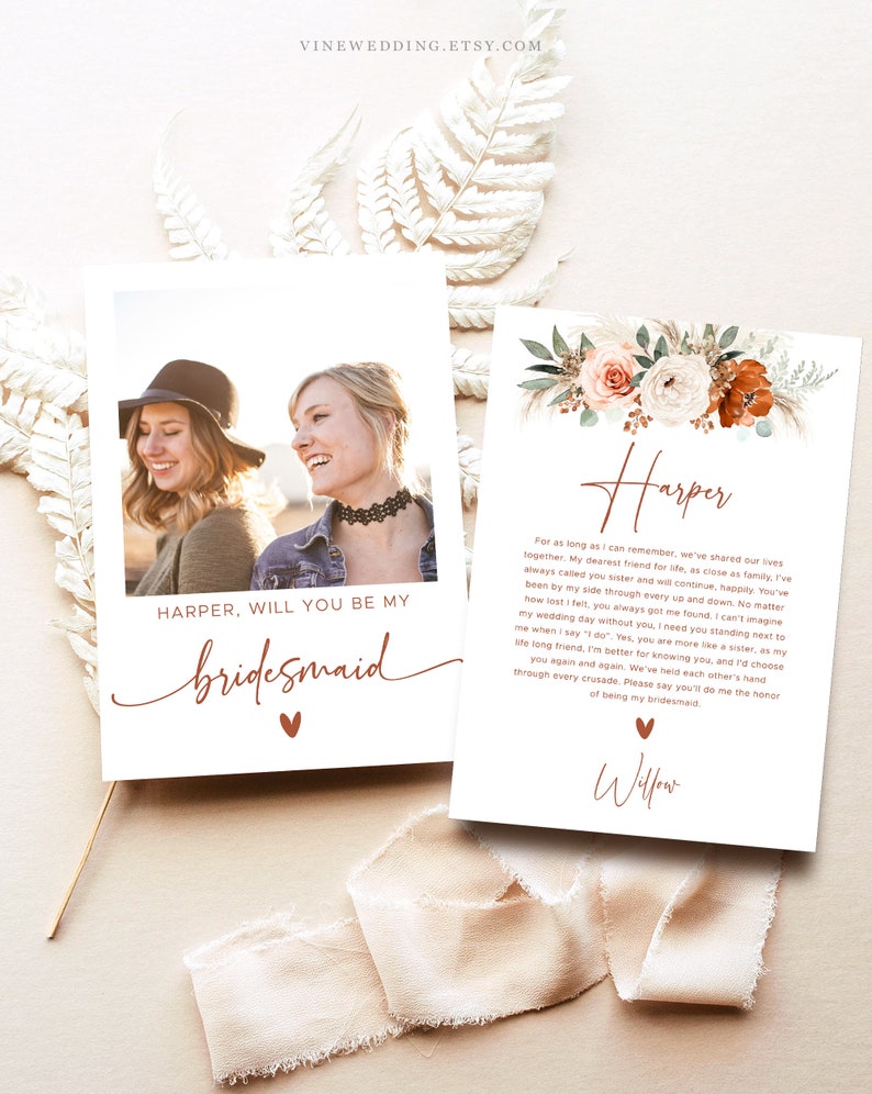 Photo Bridesmaid Proposal Card Template Will You Be My Bridesmaid