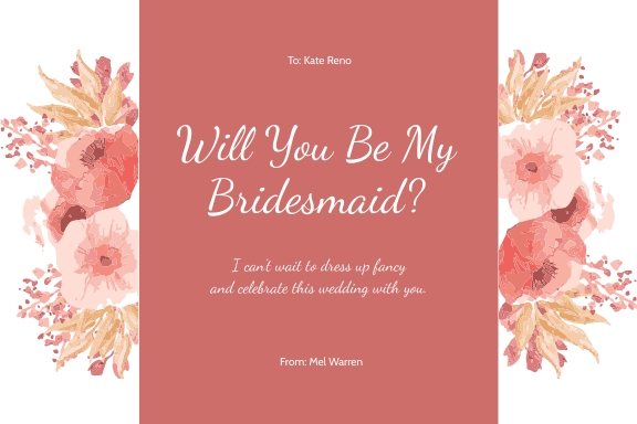 Simple Bridesmaid Proposal Card Template Will You Be My Bridesmaid