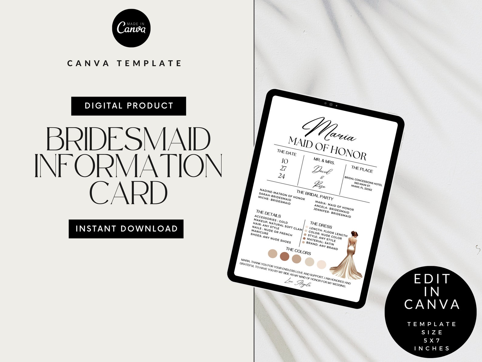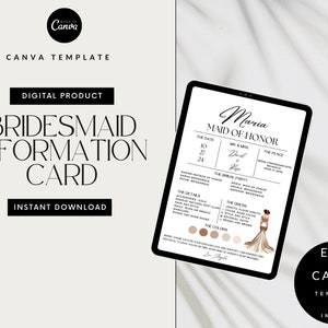 Bridesmaid Info Card Bridesmaid Template Wedding Day Timeline