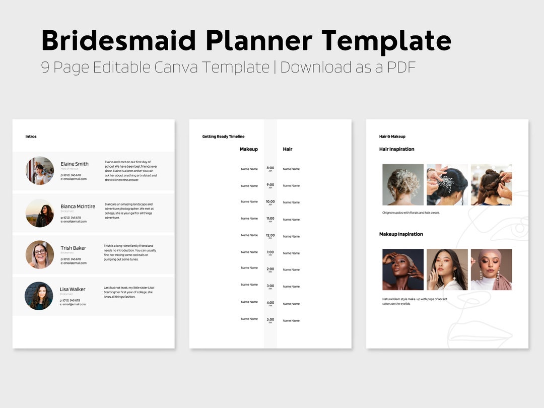 Bridesmaid Planner Template Complete Digital Template Printable