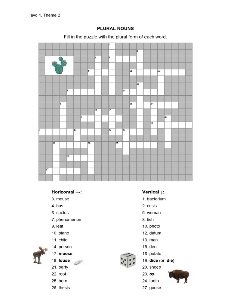 English Grammar Plurals Crossword (Bovenbouw) PDF Semantic Units