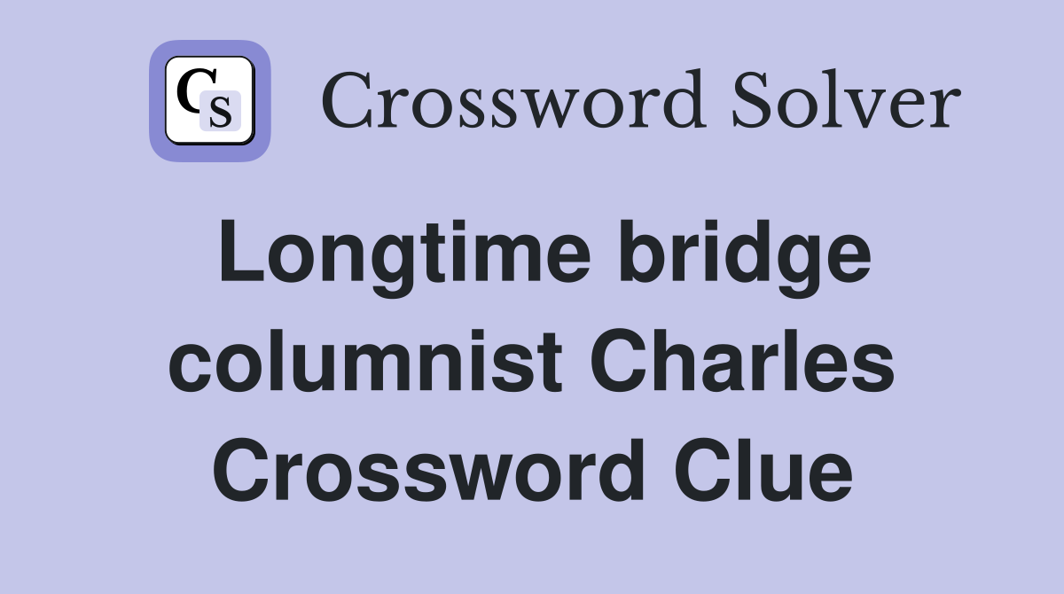 Here are some of the images for Bridge Columnist Charles Crossword that we found in our website database.