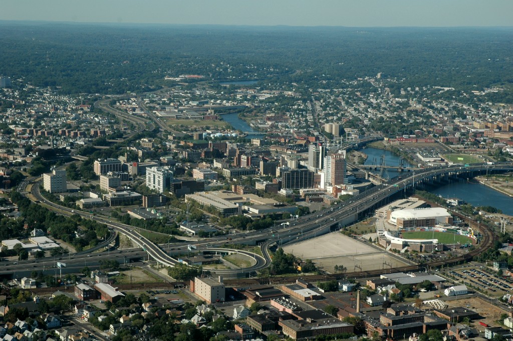 Downtown Bridgeport Connecticut Aerial Shot Stock Photo Download