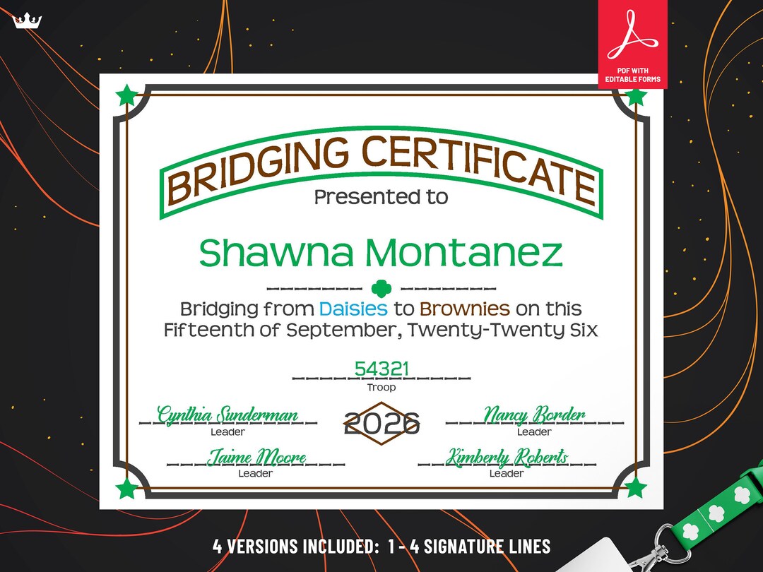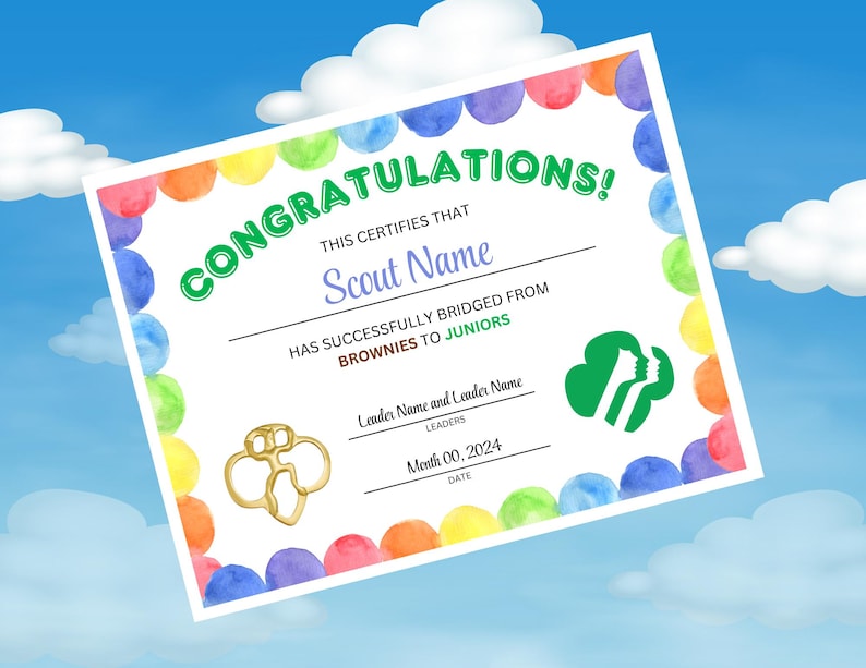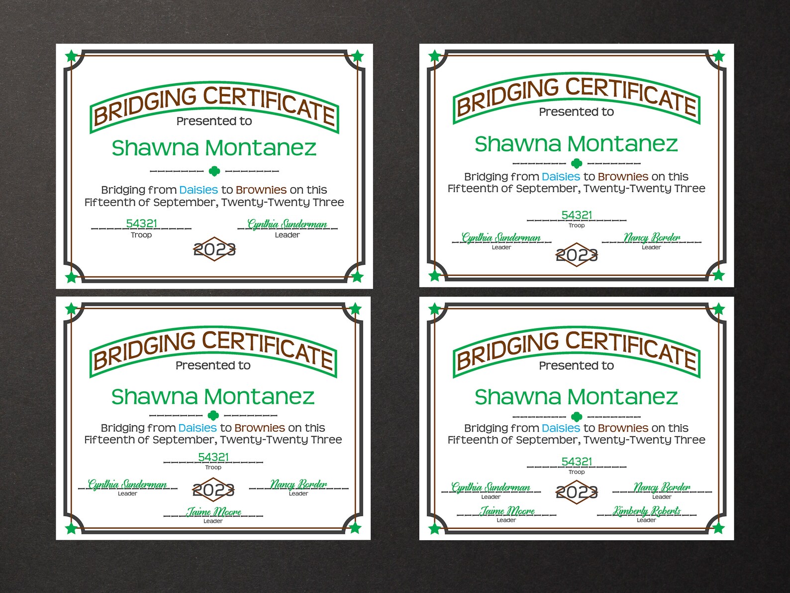 NEW Brownies Troop Bridging Ceremony Certificate Fillable Girl Scouts