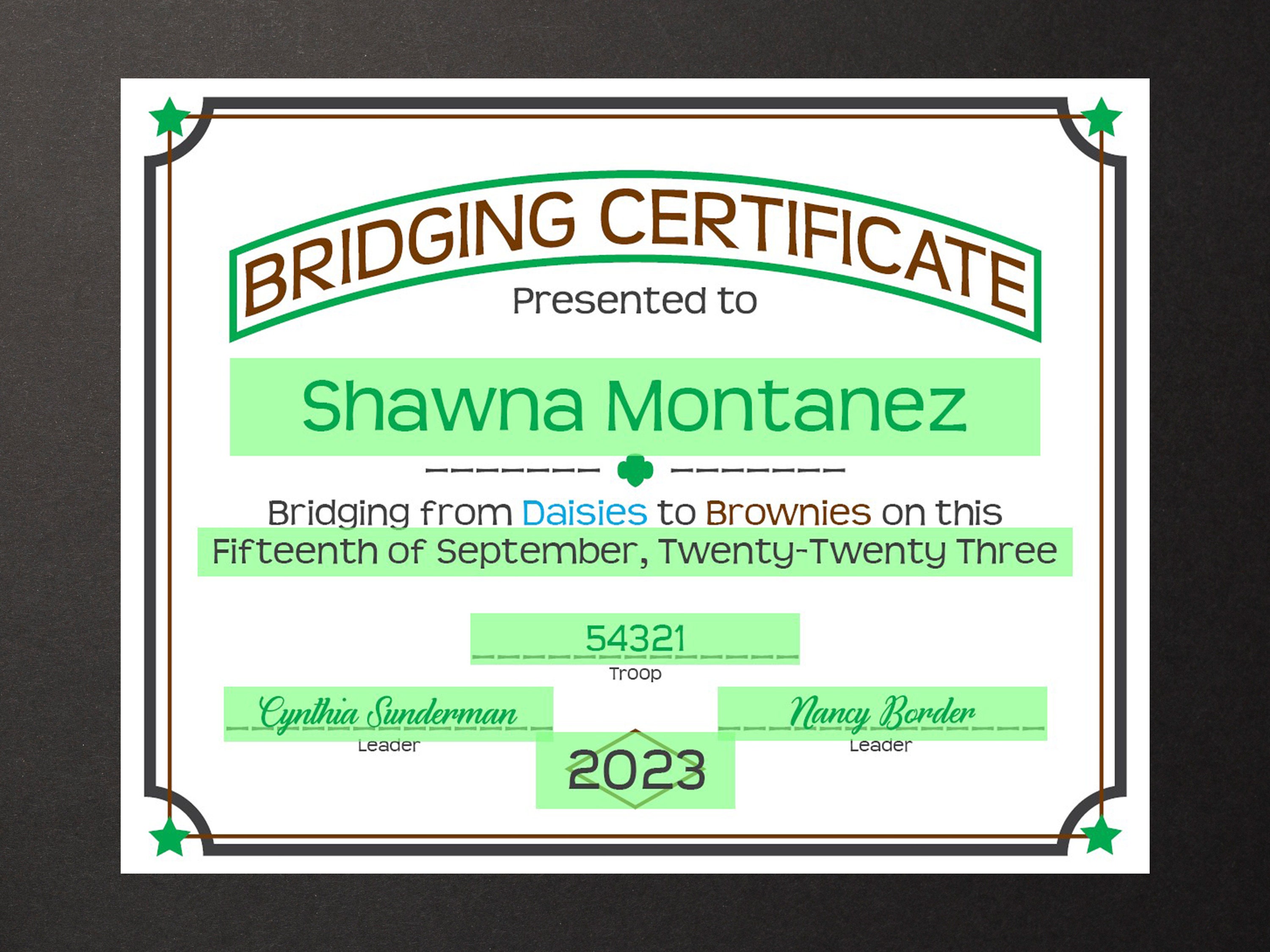 Daisy to Brownie Bridging Certificate Girl scout troop Girl scouts