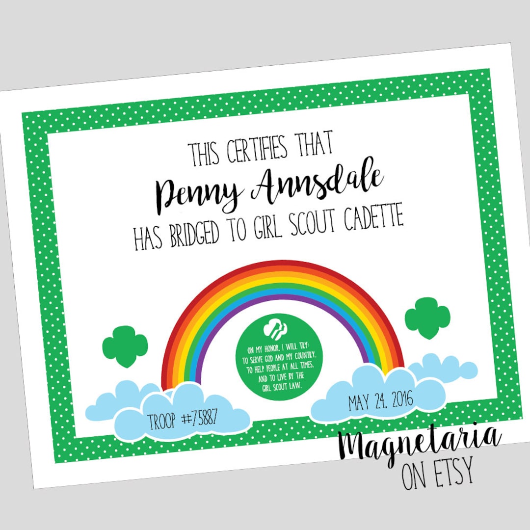Girl Scout Bridging to Juniors Certificate PDF Template Etsy