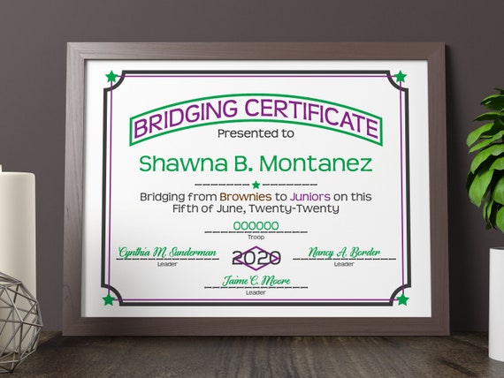 Girl Scouts Bridge to Juniors Certificate Instant Download Etsy