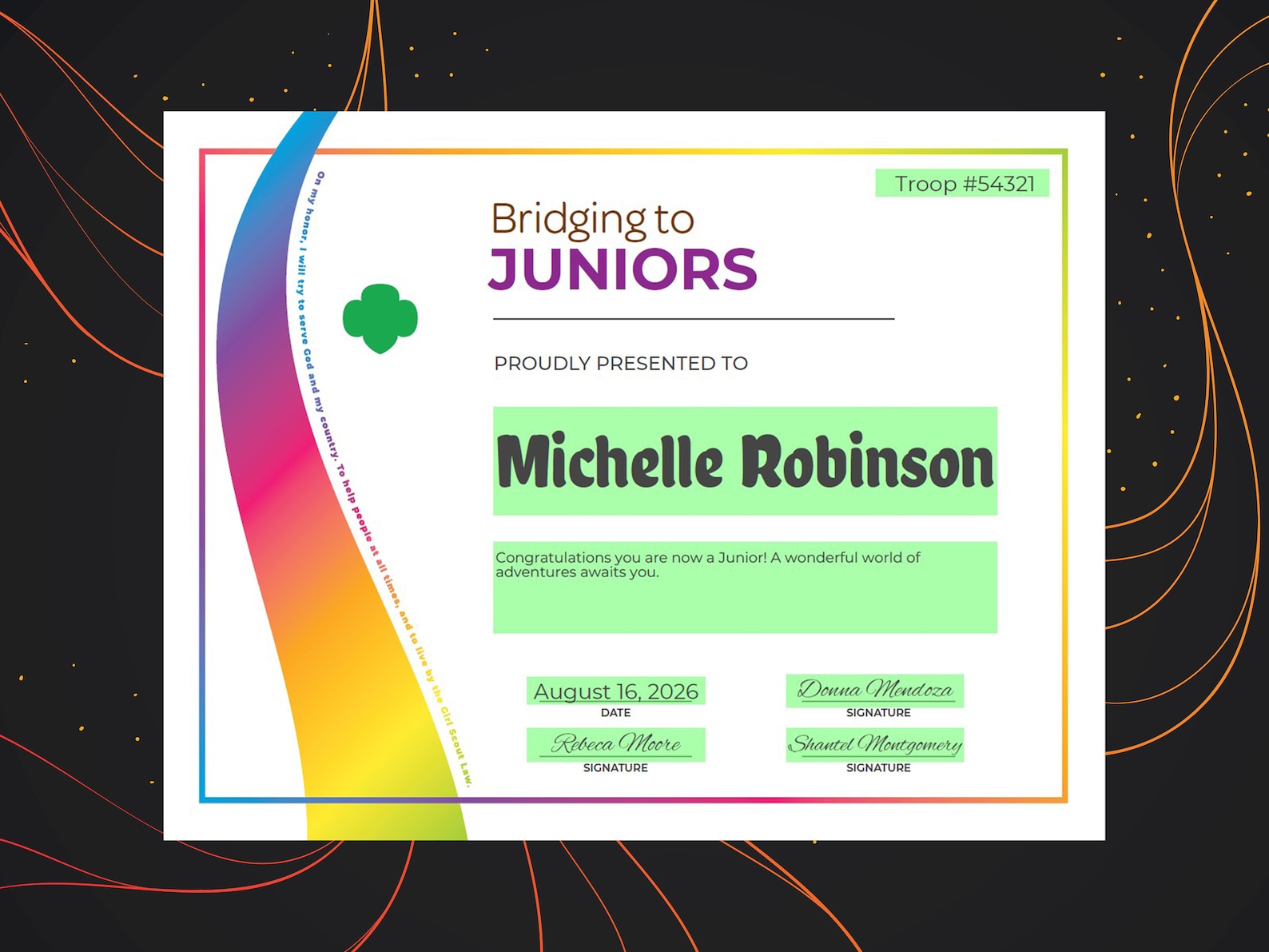 Girl Scout Junior Printable Bridging Certificate (editable PDF) Max