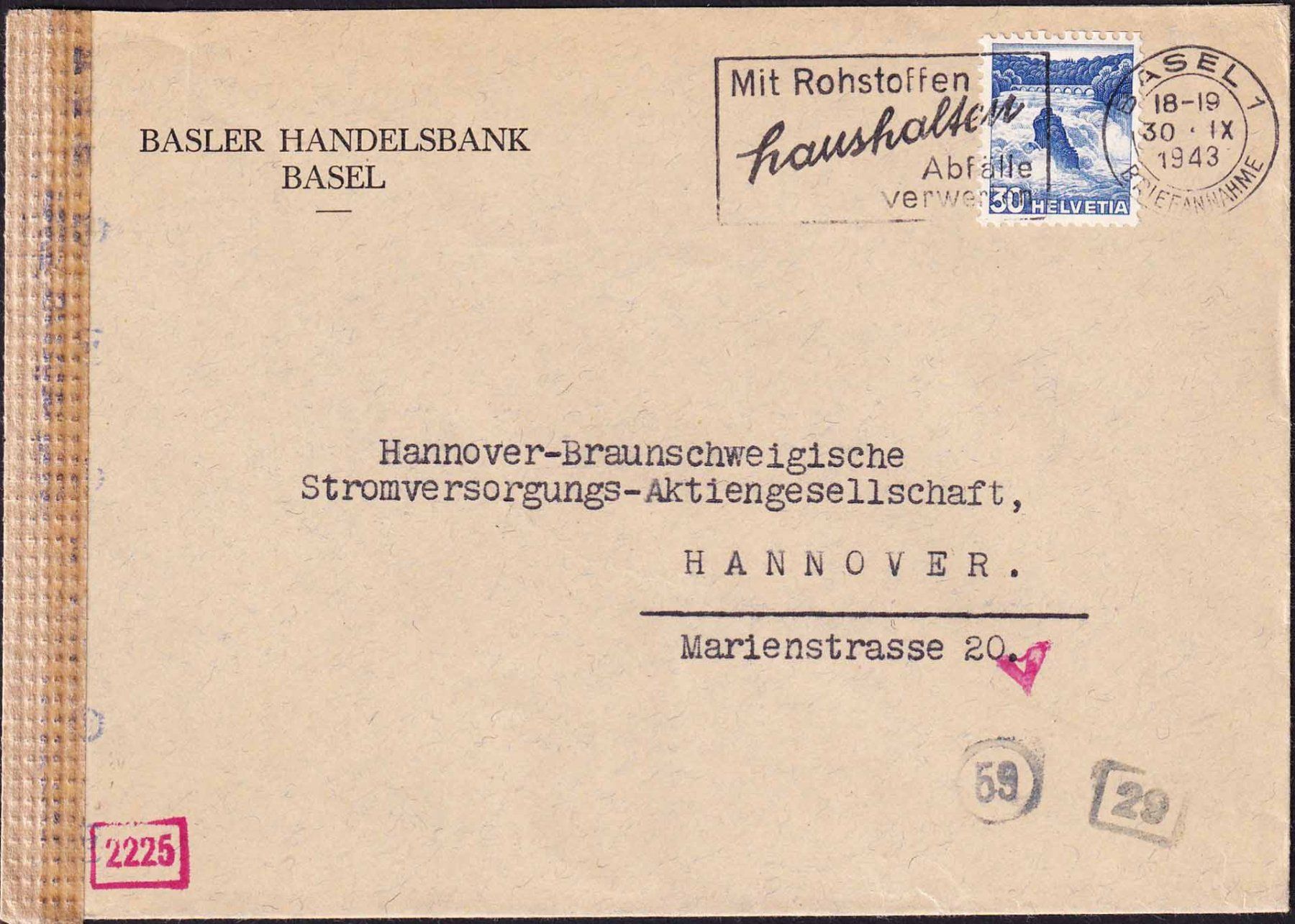 1943 Landschaft (Rheinfall) Nr 207y zensuriertem Brief (Gebraucht