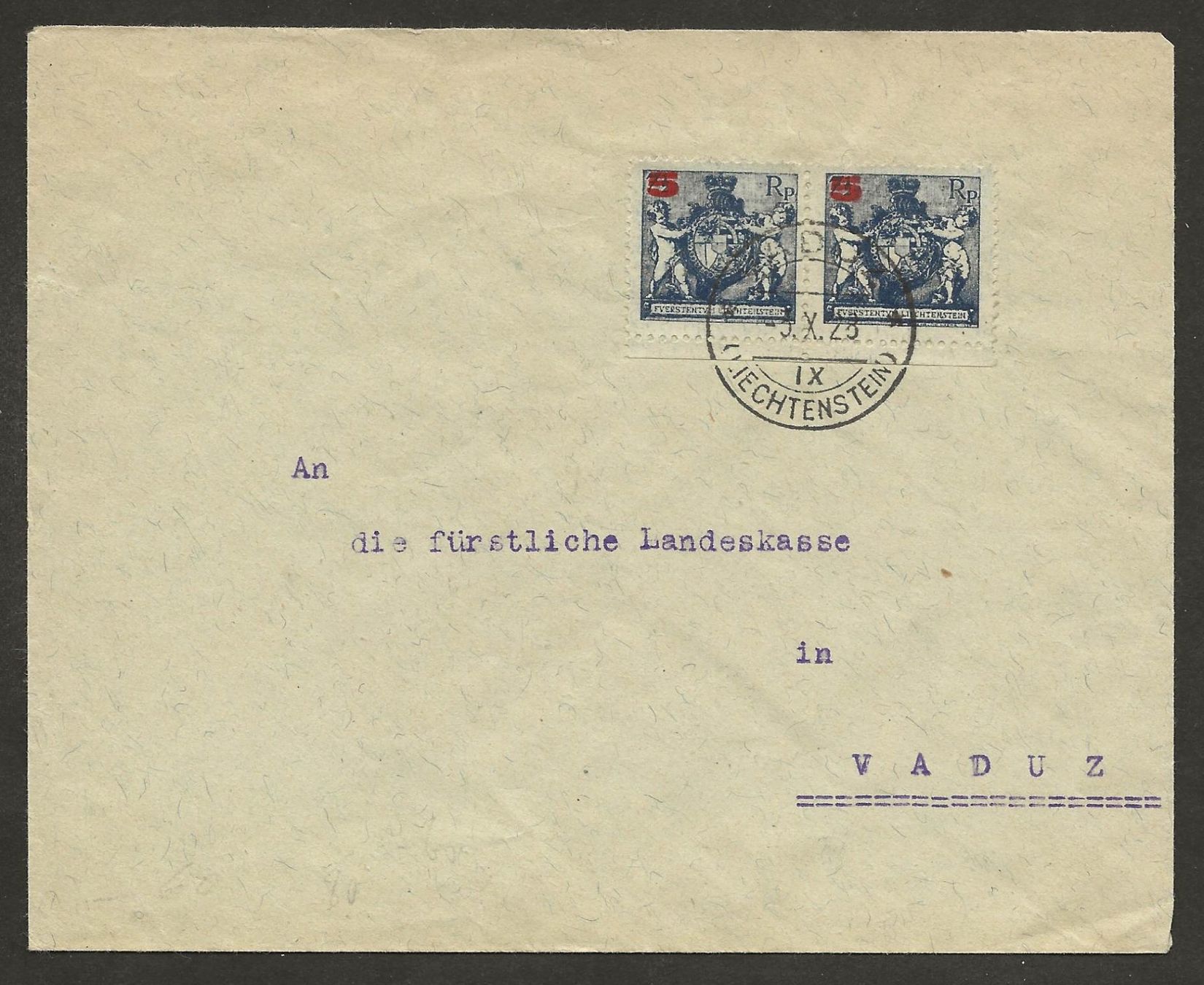 Brief 1928 Liechtenstein 61A Vaduz nach Vaduz (Gebraucht) in Au ZH für