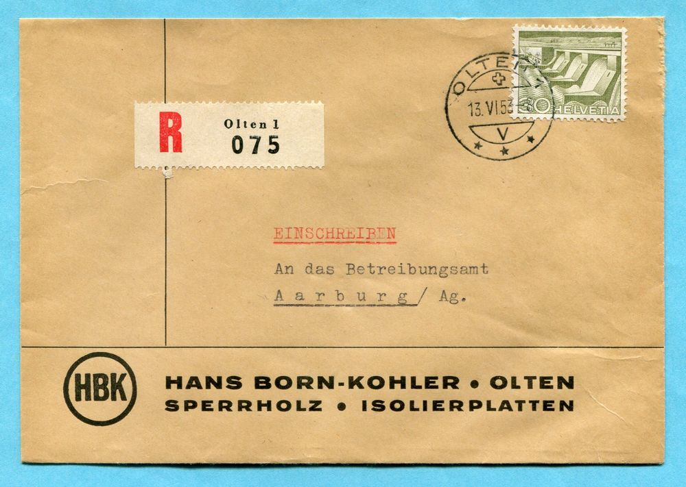 Brief Olten 1953 Absender: HBK Hans Born Kohler (Gebraucht) in