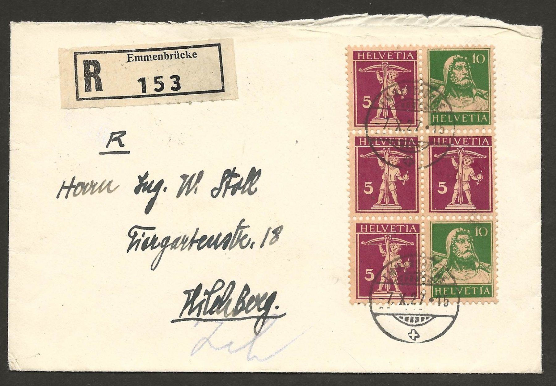 R Brief Schweiz 1927 Zusammenhängende Emmenbrücke Kilchberg (Gebraucht