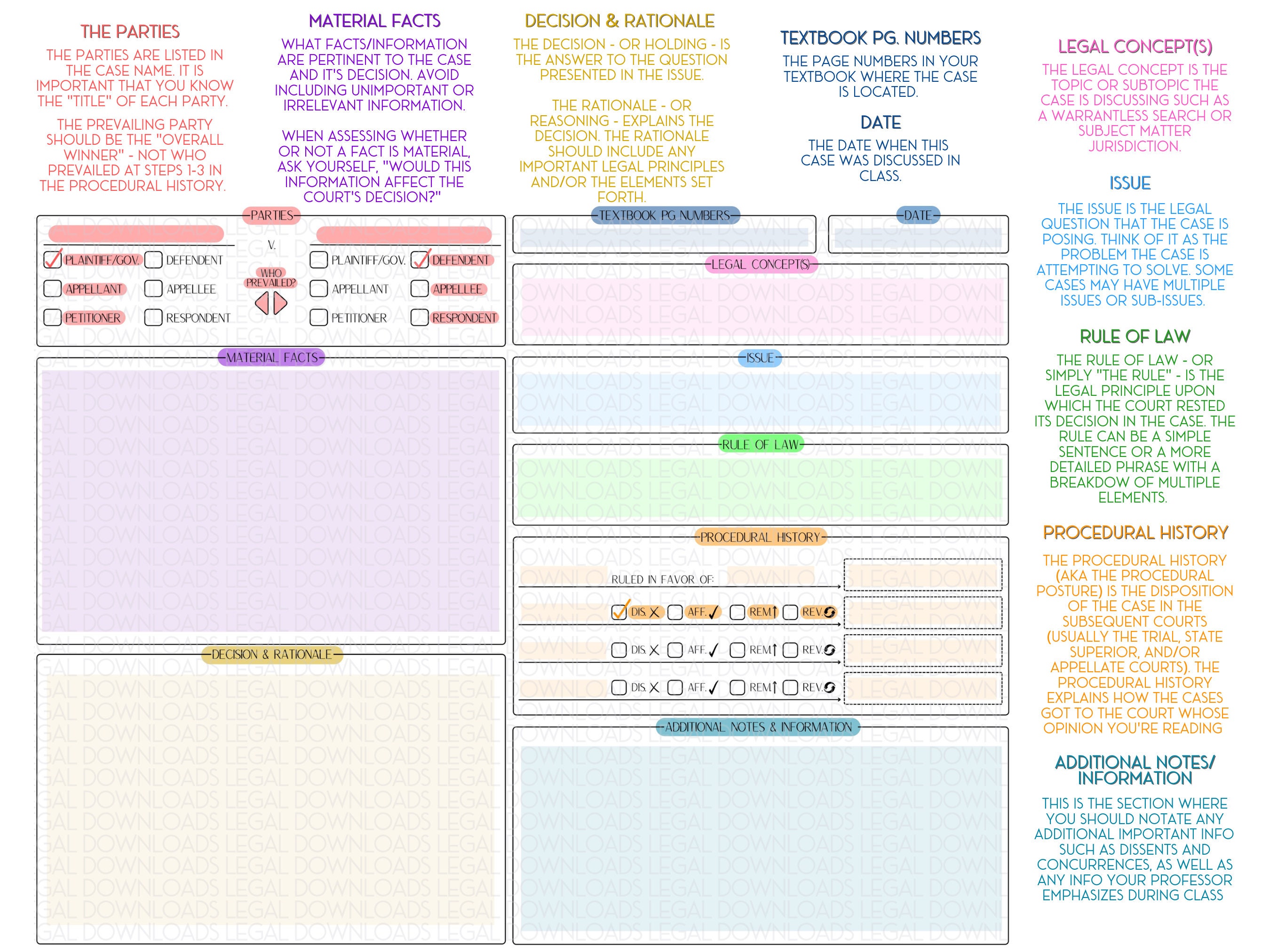 Case Brief Template Fillable Case Brief Outline Editable Law School