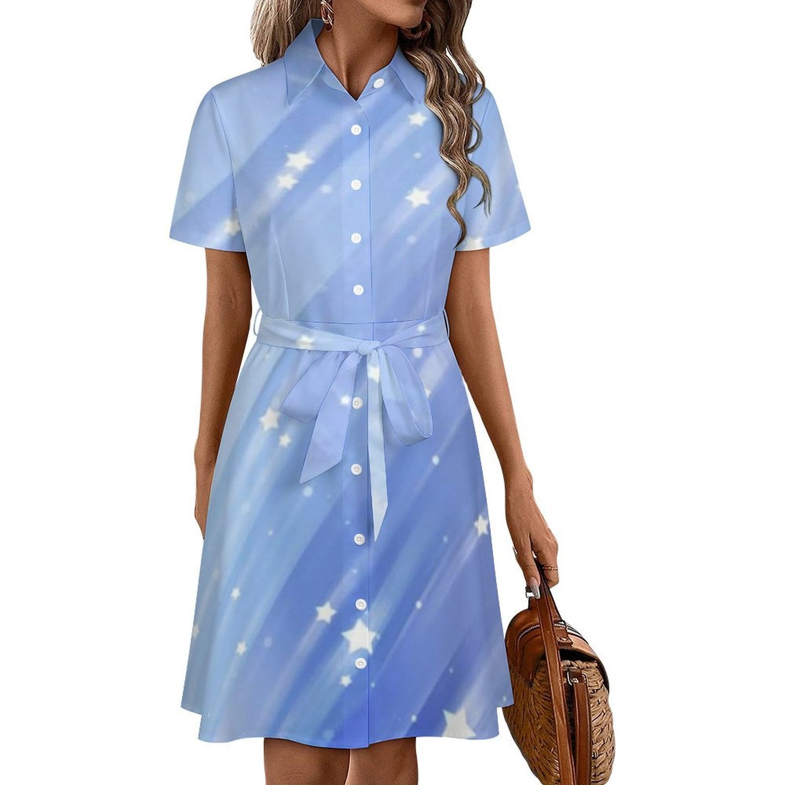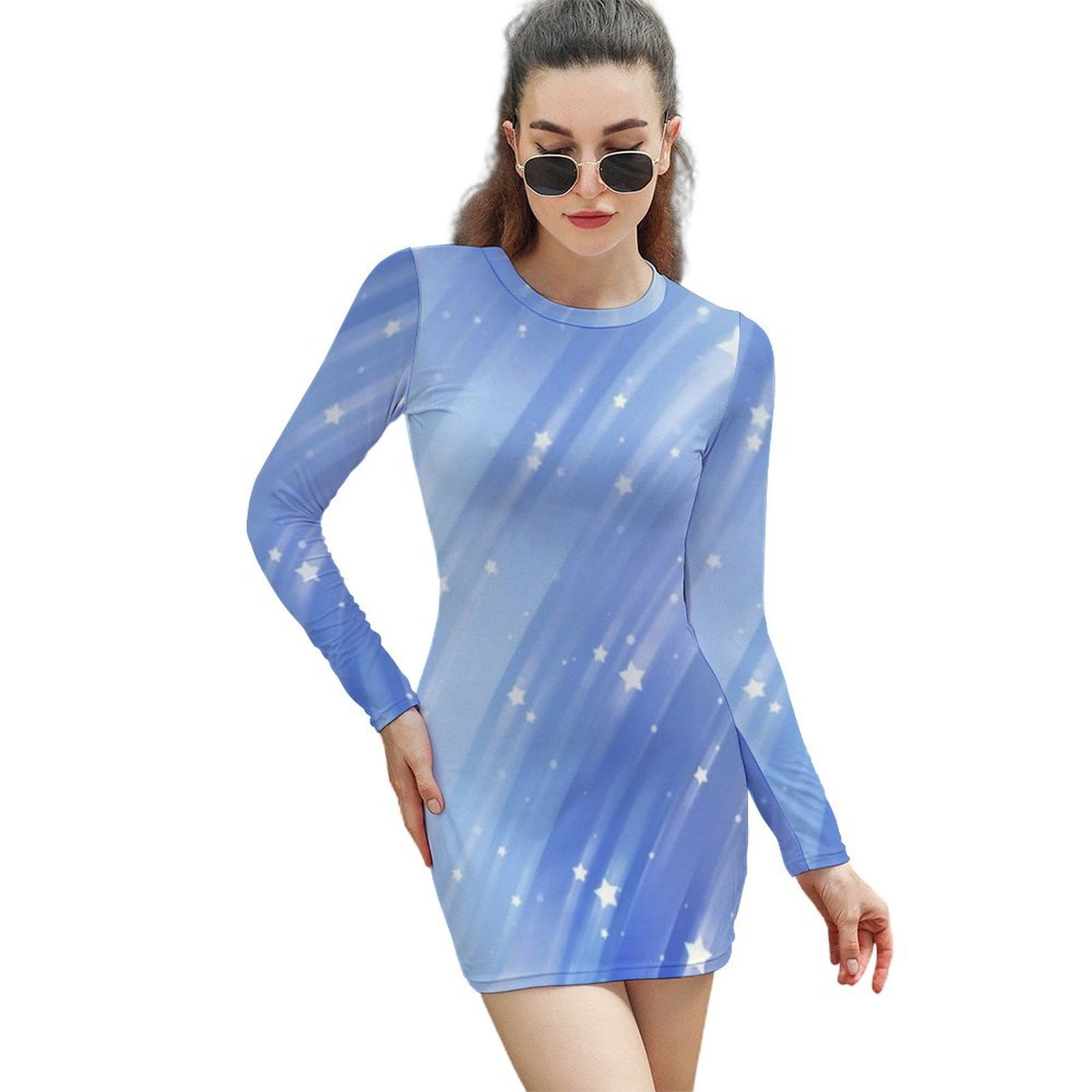 Bright Abstract Blue Background With Glitter And Stars Women #39 s Long