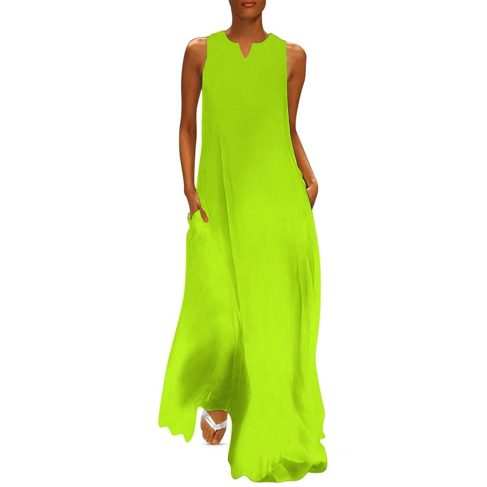 Bright Green Lime Neon Color Long Dress dress women summer dress for
