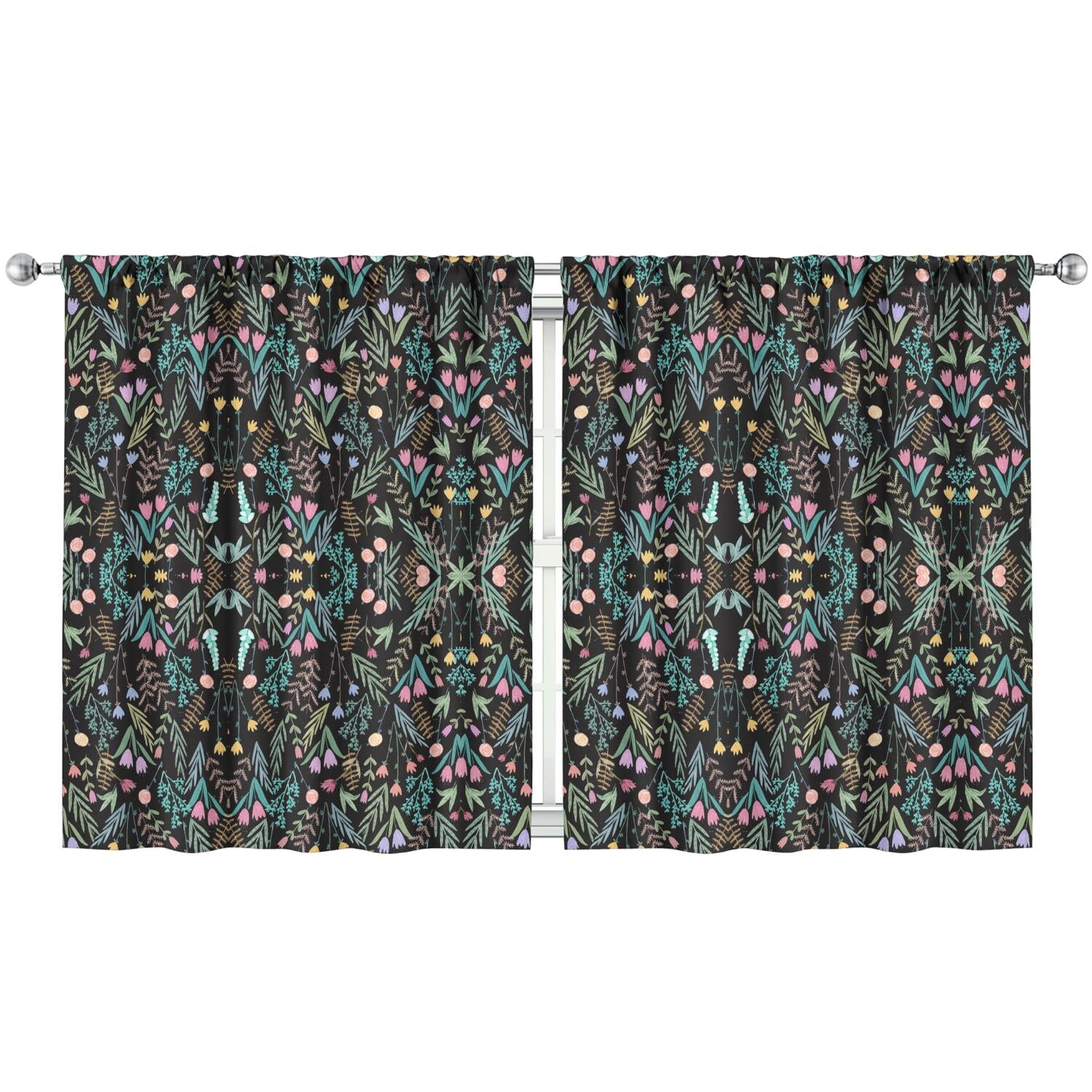 Bright Floral Curtains 2 PCS Colorful Vintage Flower Pattern Semi
