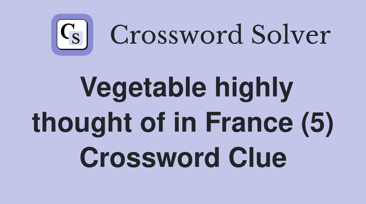 Vegetable highly thought of in France (5) Crossword Clue Answers