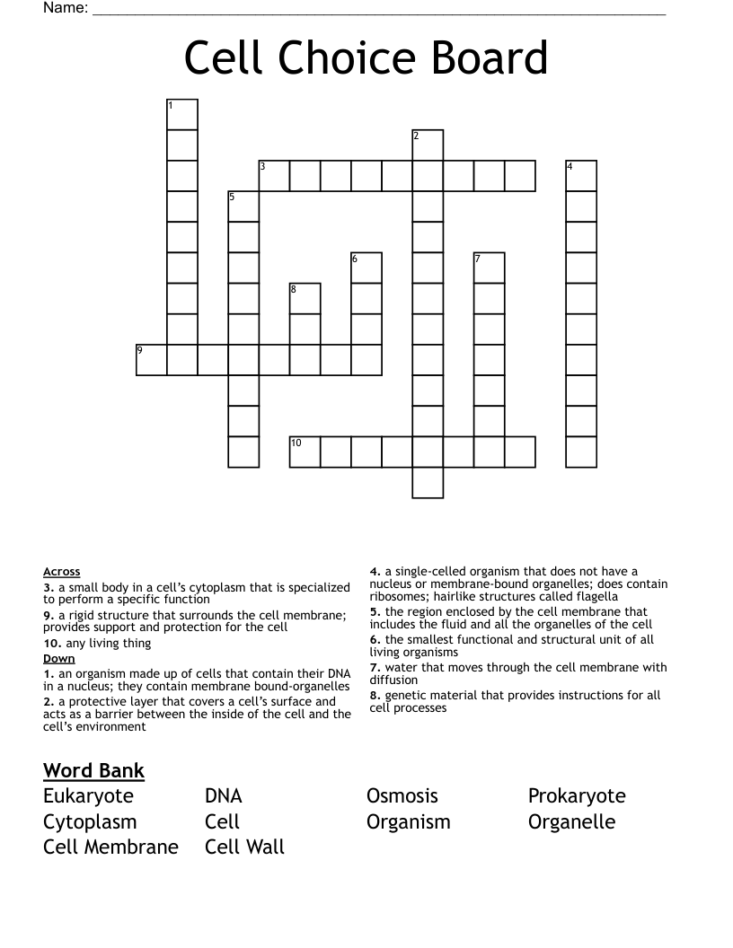 Cell Choice Board Crossword Puzzle Crossword Labs