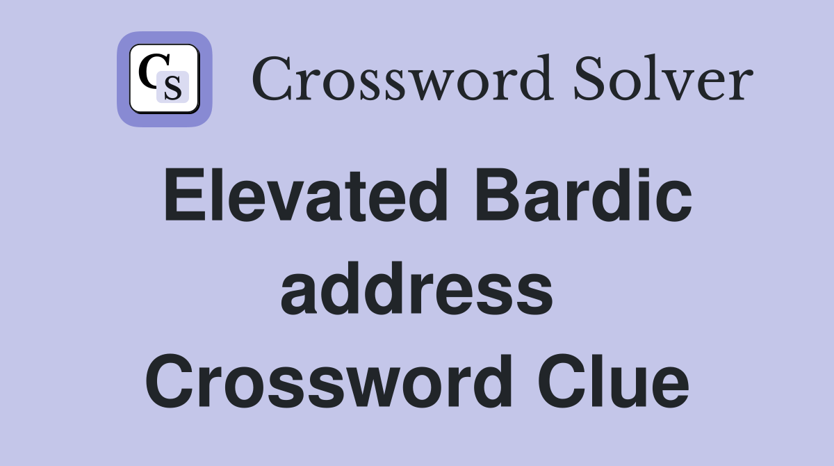 Elevated Bardic address Crossword Clue Answers Crossword Solver