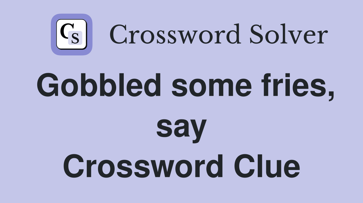 Gobbled some fries say Crossword Clue Answers Crossword Solver