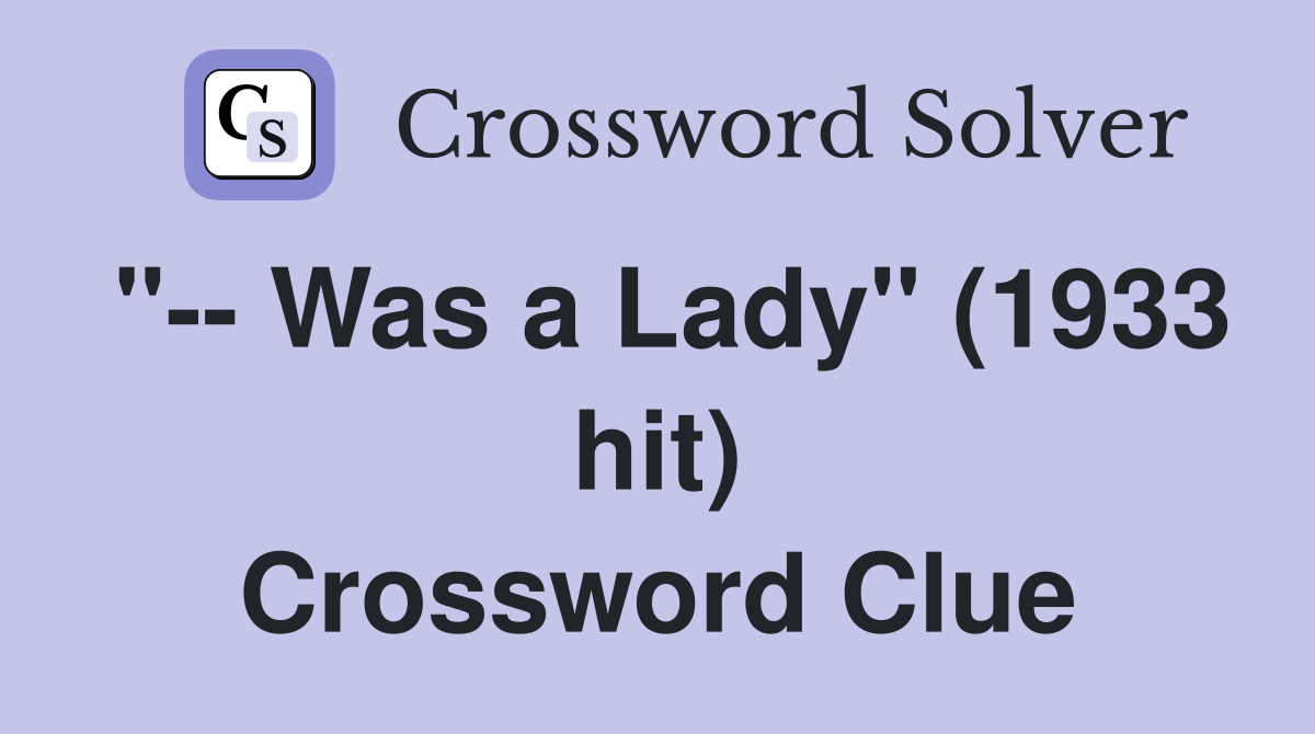 Was a Lady quot (1933 hit) Crossword Clue Answers Crossword Solver