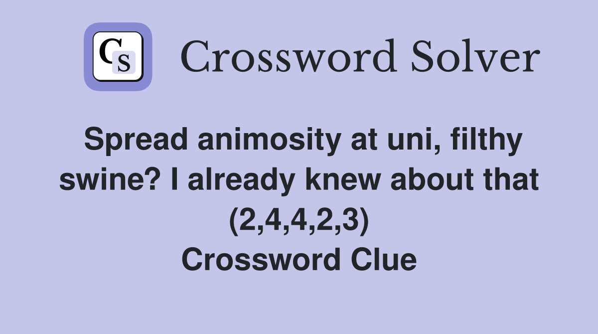 Spread animosity at uni filthy swine? I already knew about that (2 4 4
