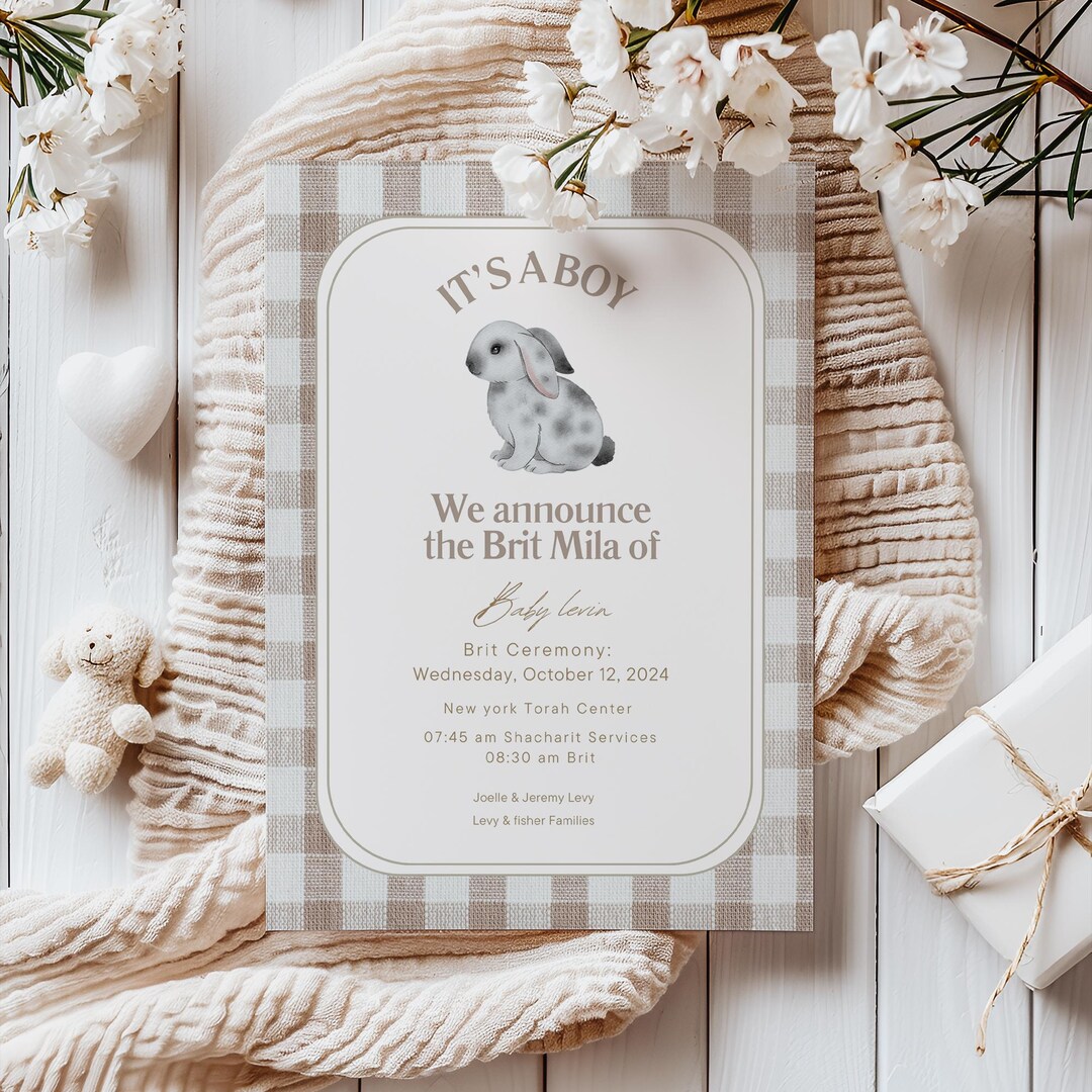 Brit Milah Invitation Template: Modern Jewish Baby Boy Announcement