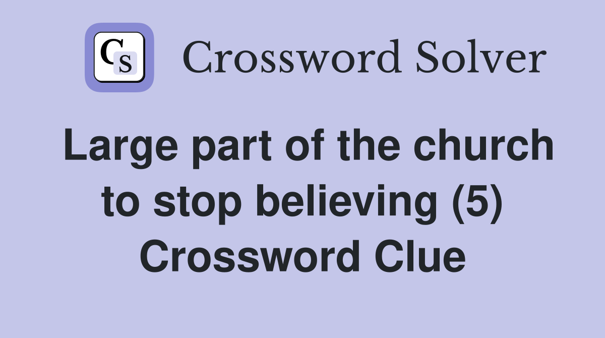 Large part of the church to stop believing (5) Crossword Clue Answers