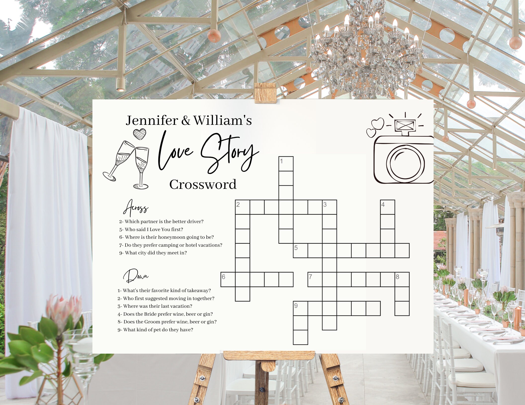Custom Wedding Crossword Puzzle Personalized Bridal Shower Crossword