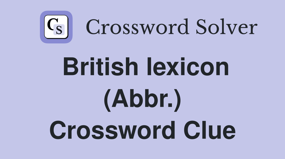 British lexicon (Abbr ) Crossword Clue Answers Crossword Solver