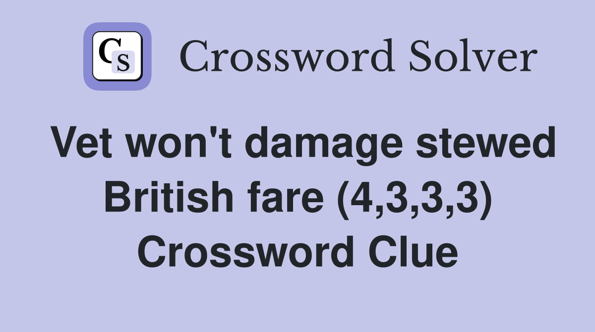 Vet won #39 t damage stewed British fare (4 3 3 3) Crossword Clue Answers