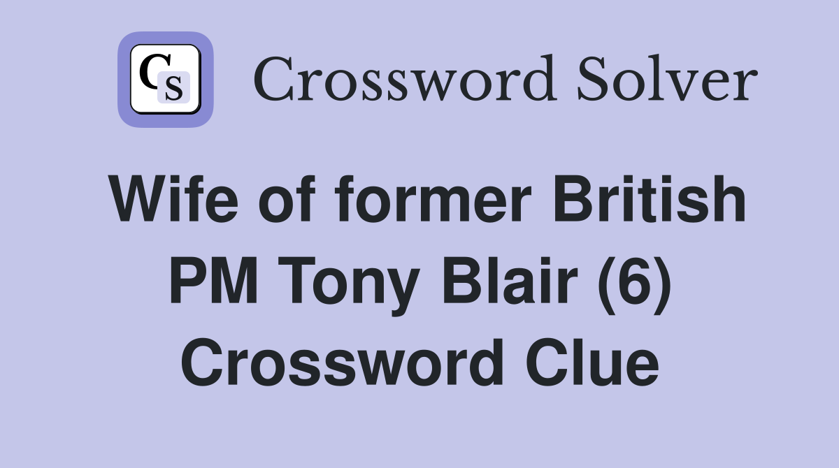 Wife of former British PM Tony Blair (6) Crossword Clue Answers