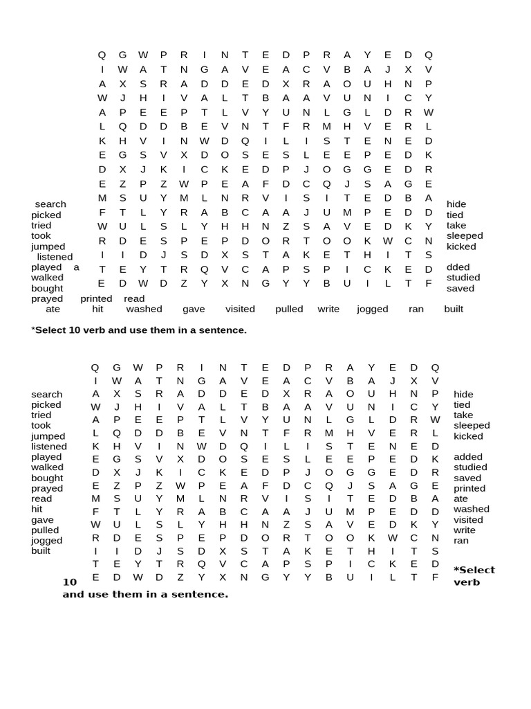 Past Tense Verbs: A Crossword Puzzle for Conjugating Regular and