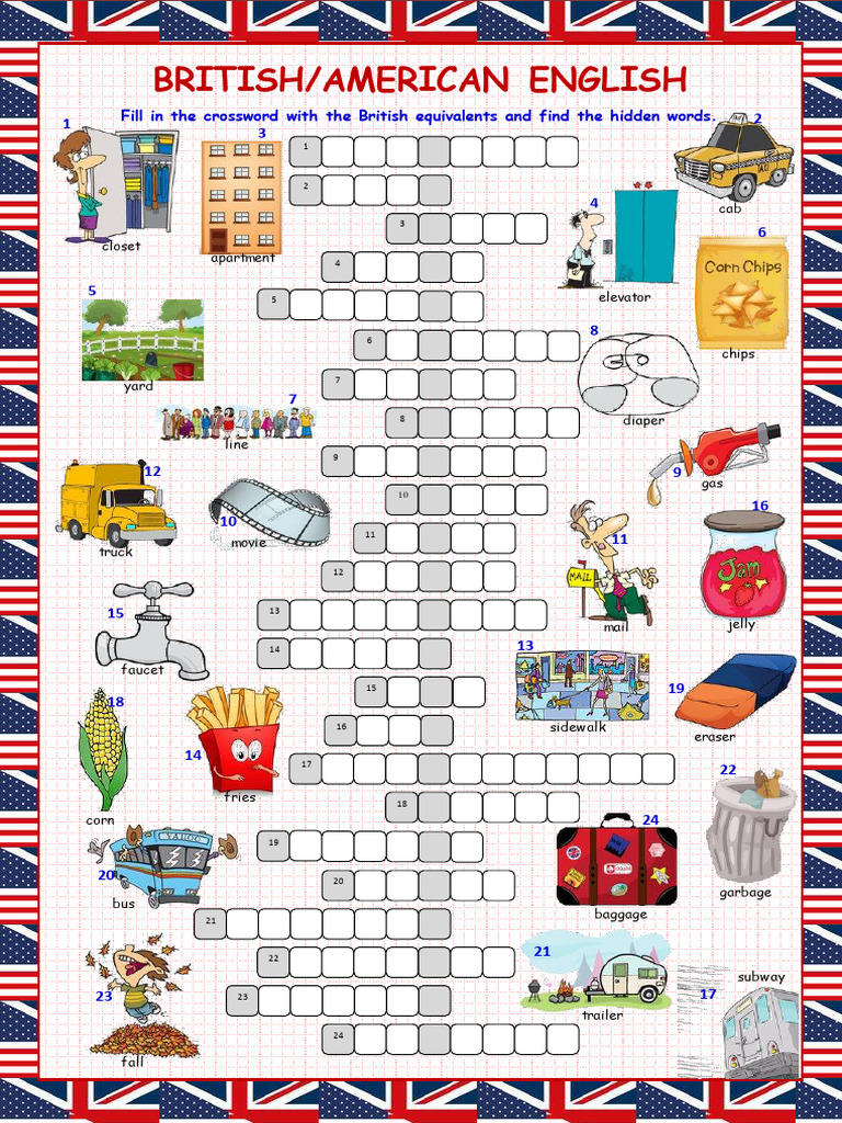 Britishamerican English Crossword Puzzle Crosswords Fun Activities