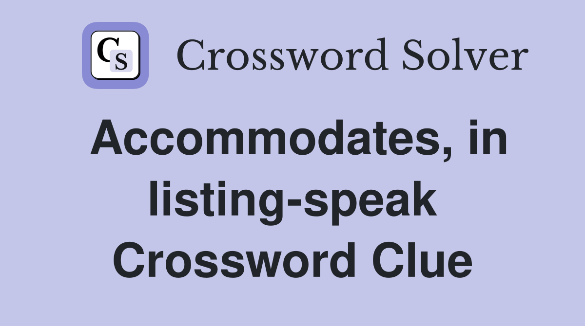 Accommodates in listing speak Crossword Clue Answers Crossword Solver