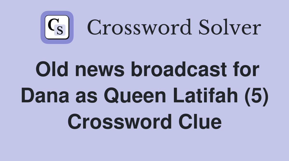 Old news broadcast for Dana as Queen Latifah (5) Crossword Clue